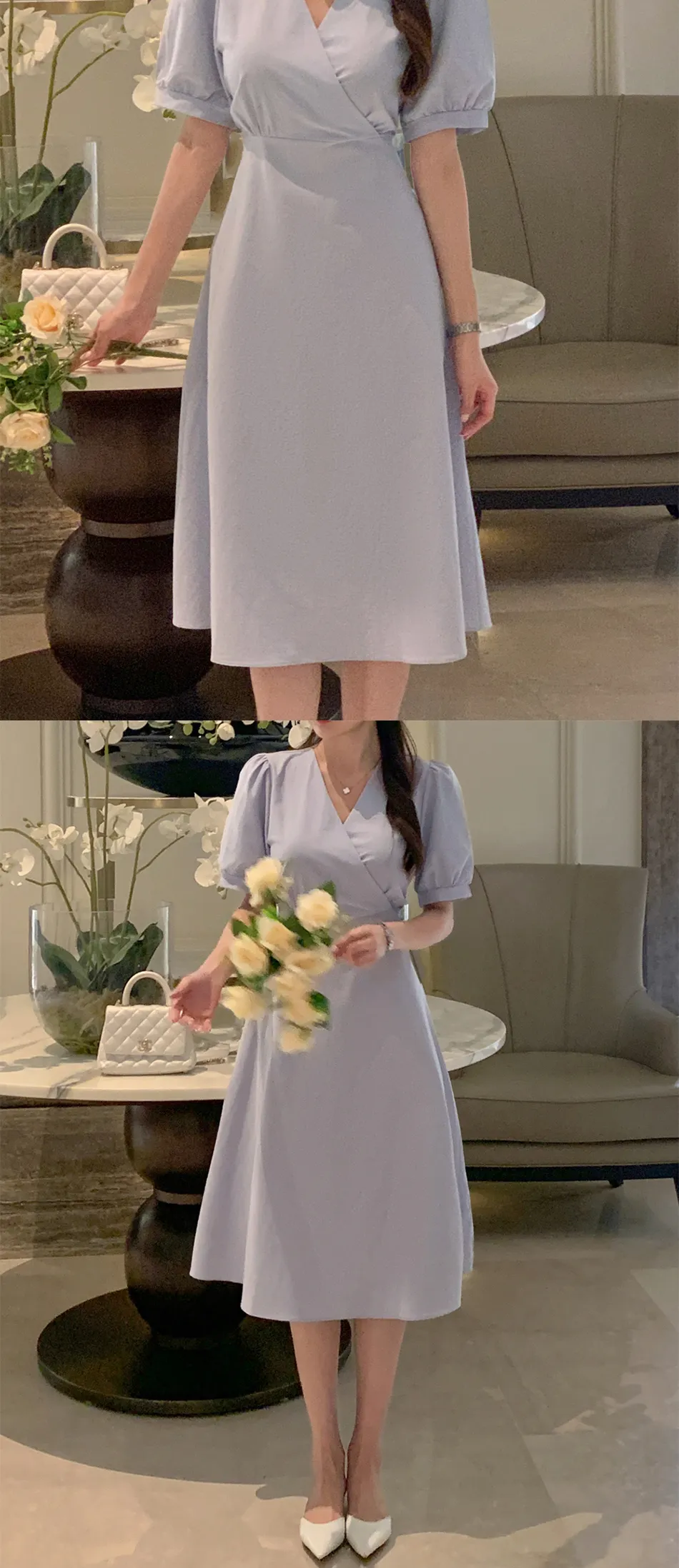 肩幅 : 36 バスト幅 : 44 着丈 : 110 袖幅 : 14 袖丈 : 28 アームホール幅 : 25 ウエスト幅 : 40 ヒップ幅 : 52 裾幅 : 85