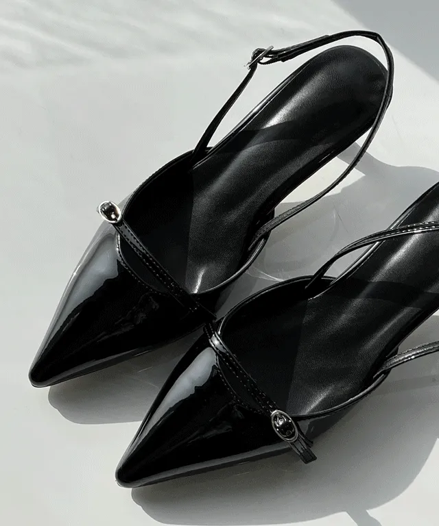 レザー調バックルヒールサンダルスリングバック