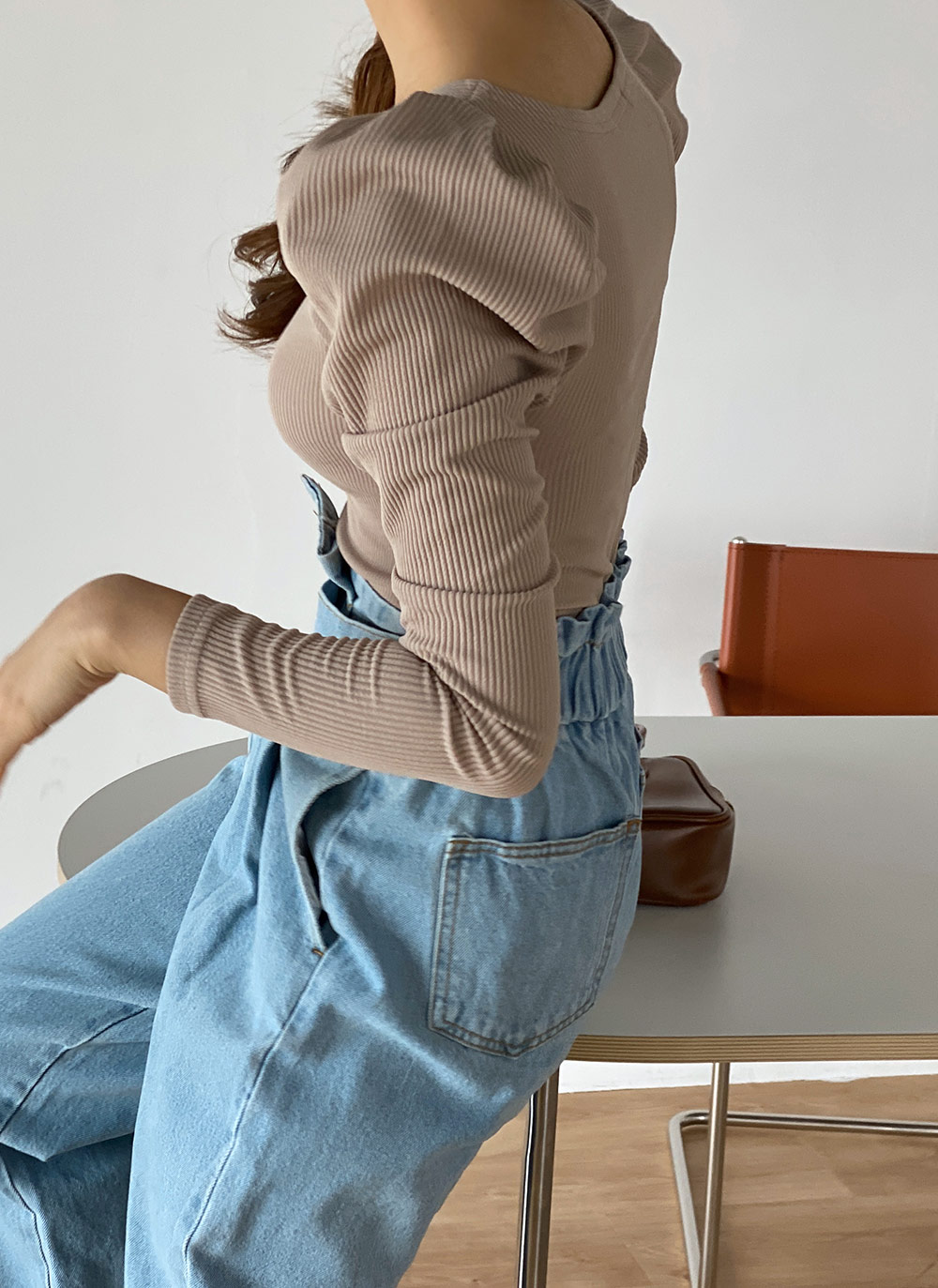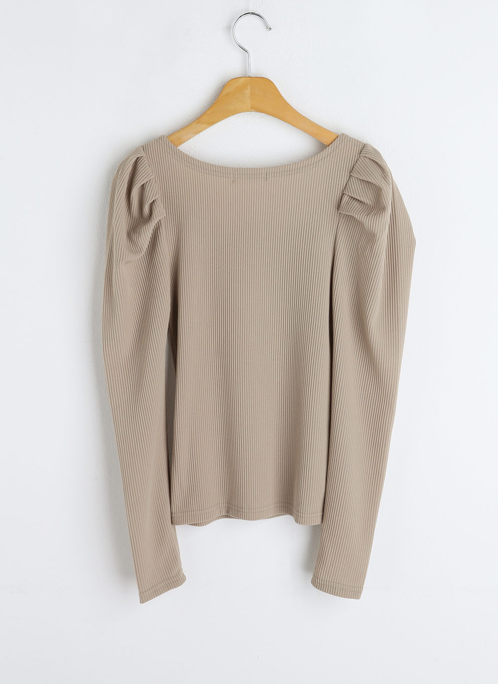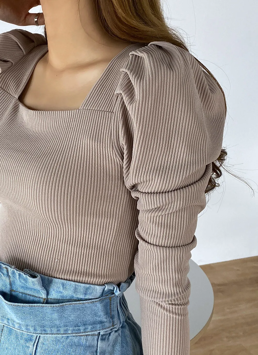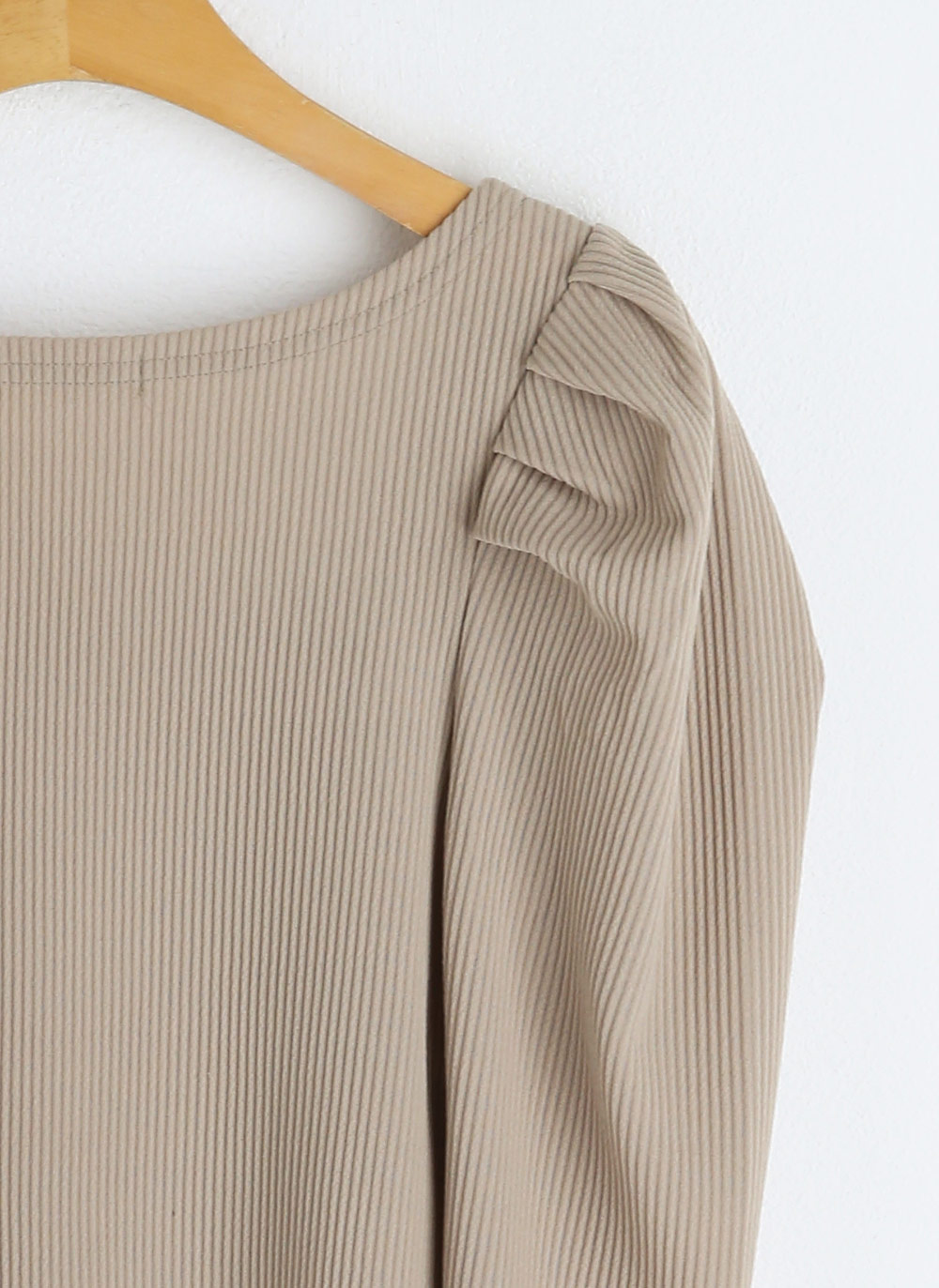 ・リブ ・ギャザー×パフ×長袖