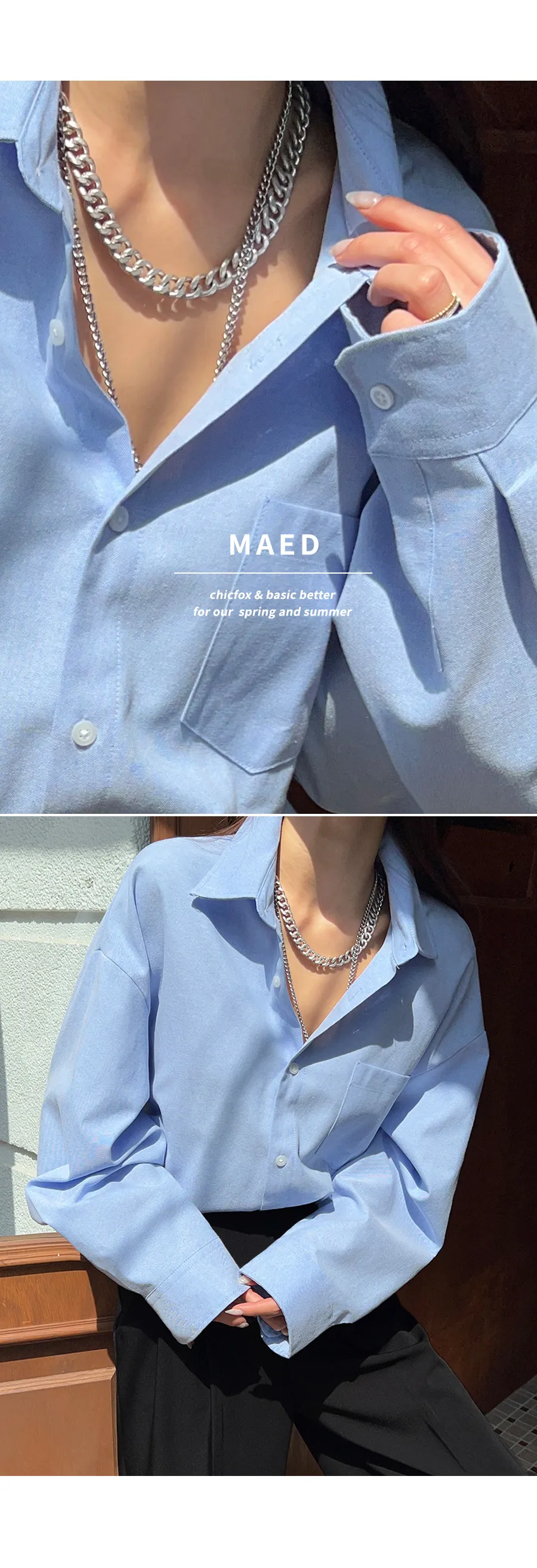- ボールドなチェーンネックレスとスタイリッシュ!