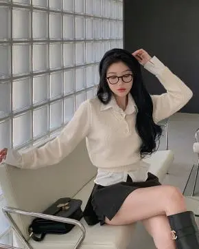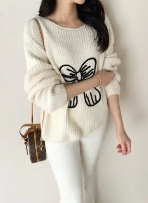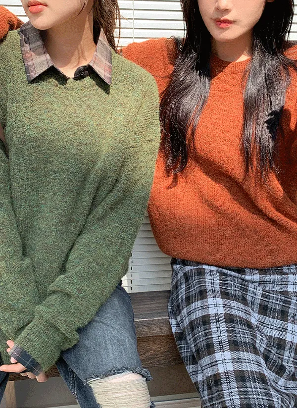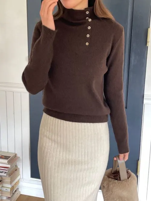 モダンな首元の万能ニットです。