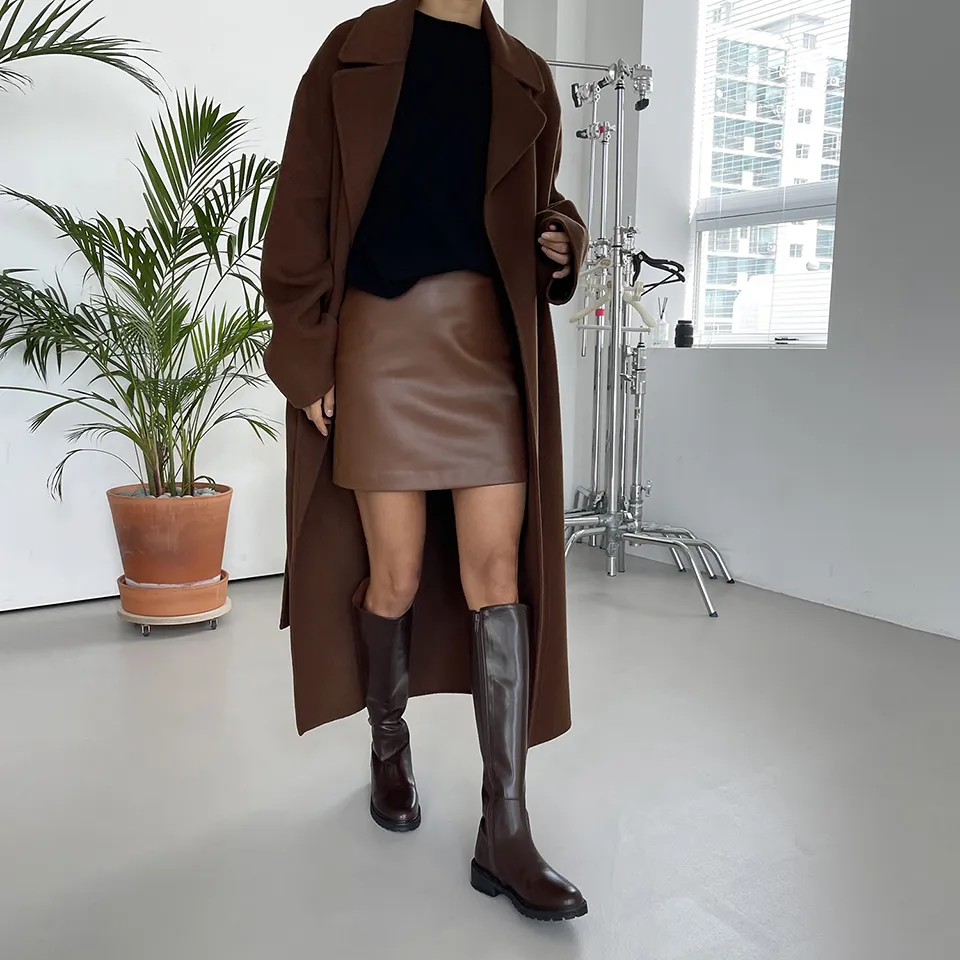 ストラップ付ウールハイネックコート