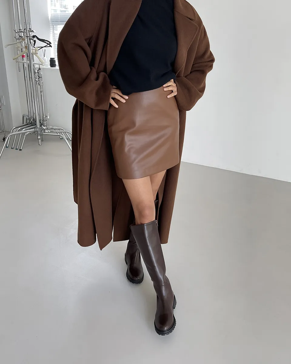 レザー調ベーシックロングブーツ