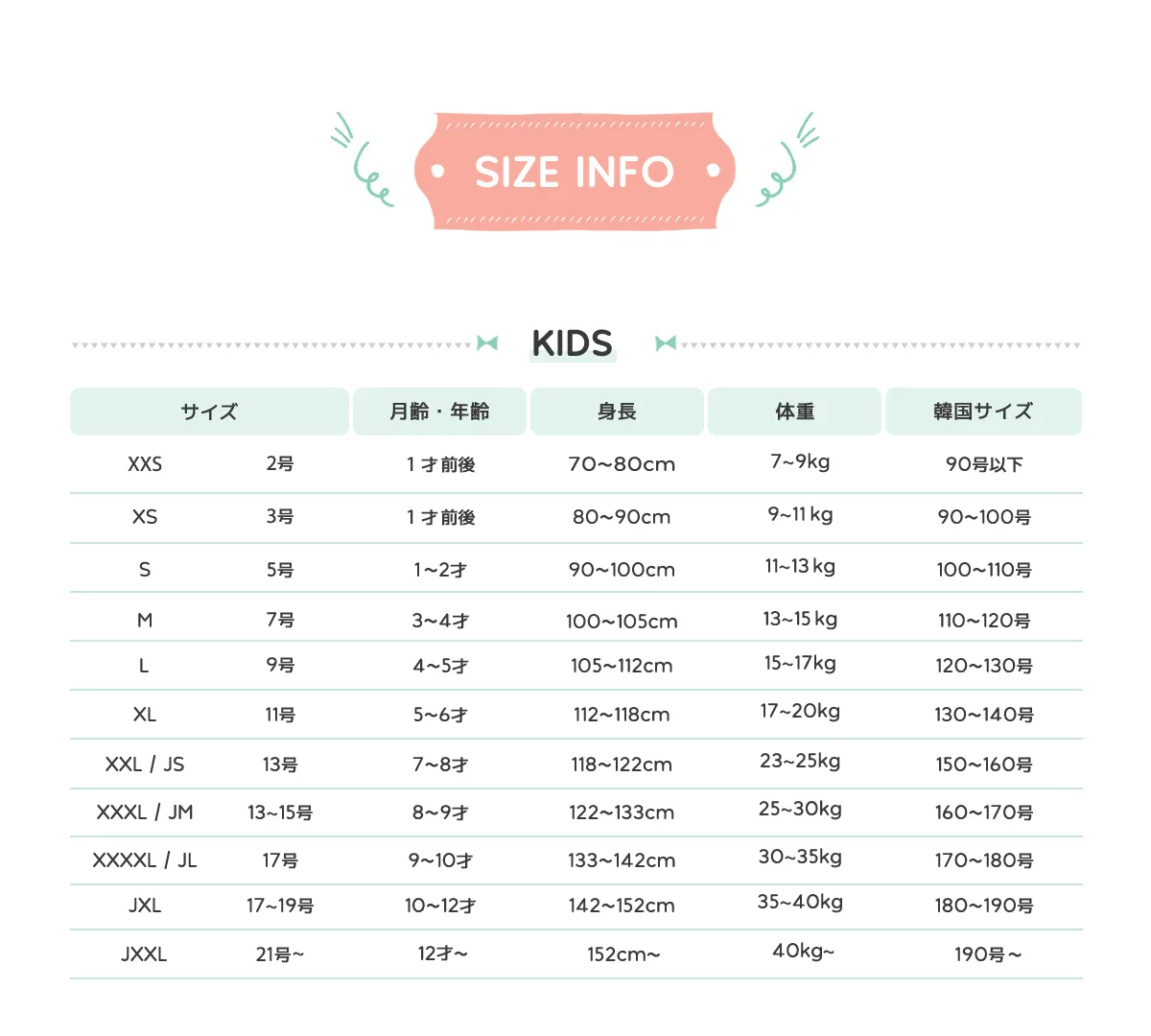 • 上記に載っていないサイズは、記載されているサイズをご参考ください。