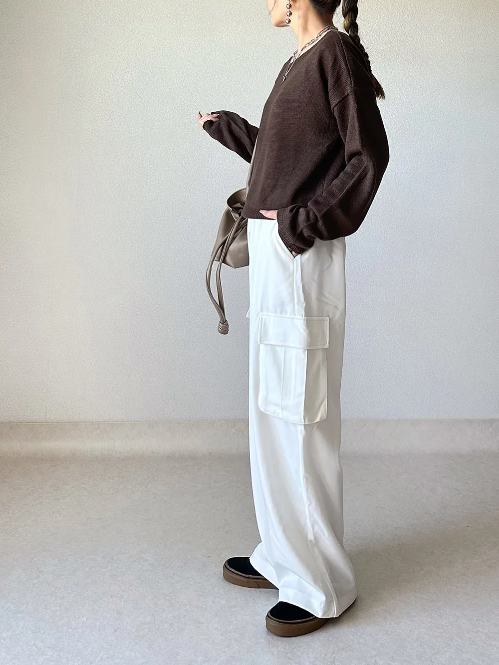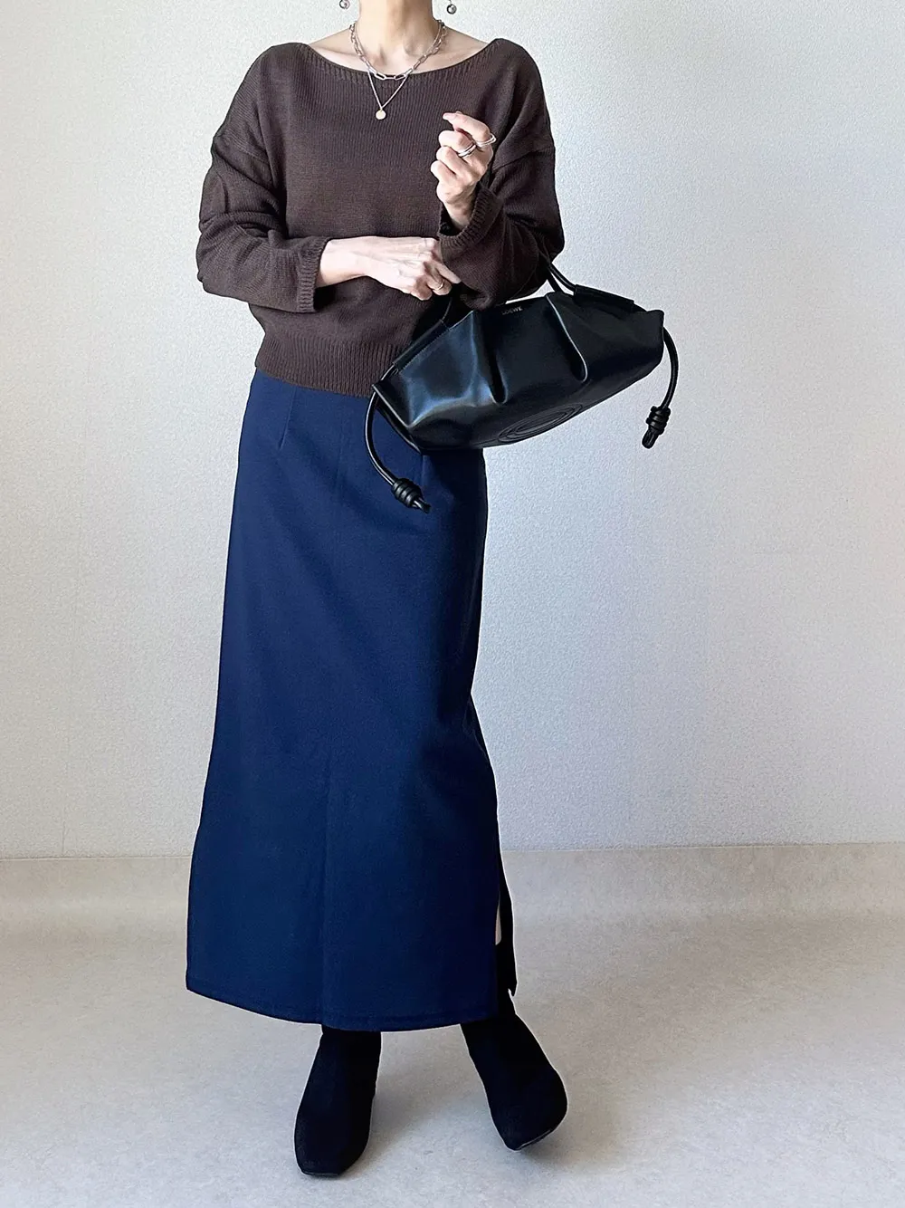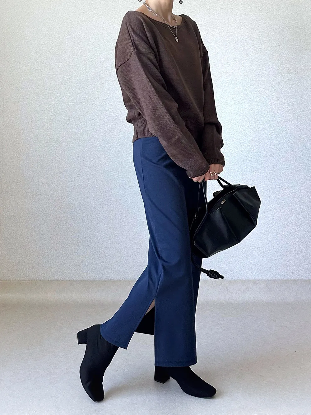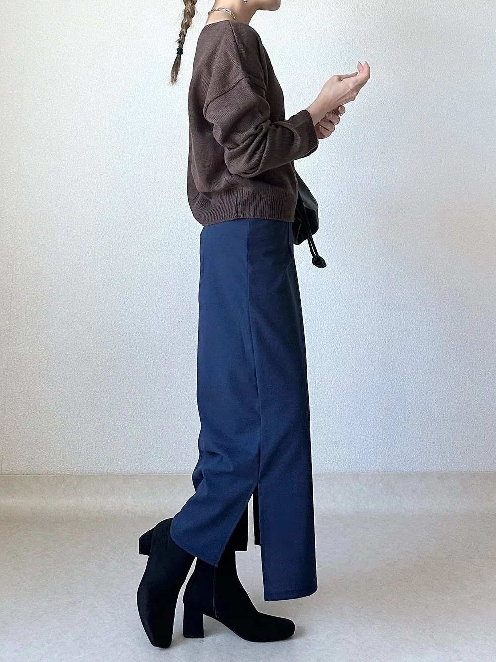 スカートや太めパンツと相性抜群です。