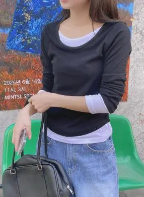 大胆に開いた襟元でデコルテがスッキリ見え、