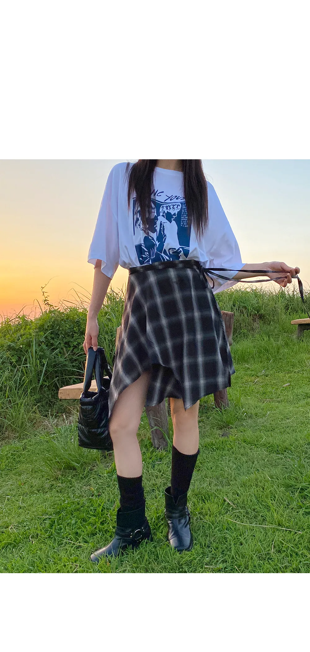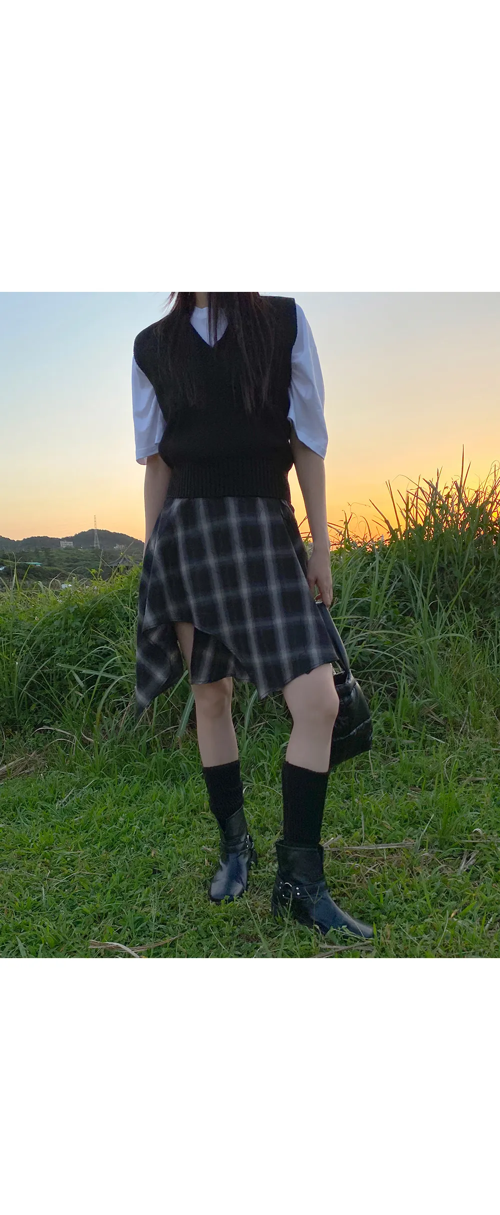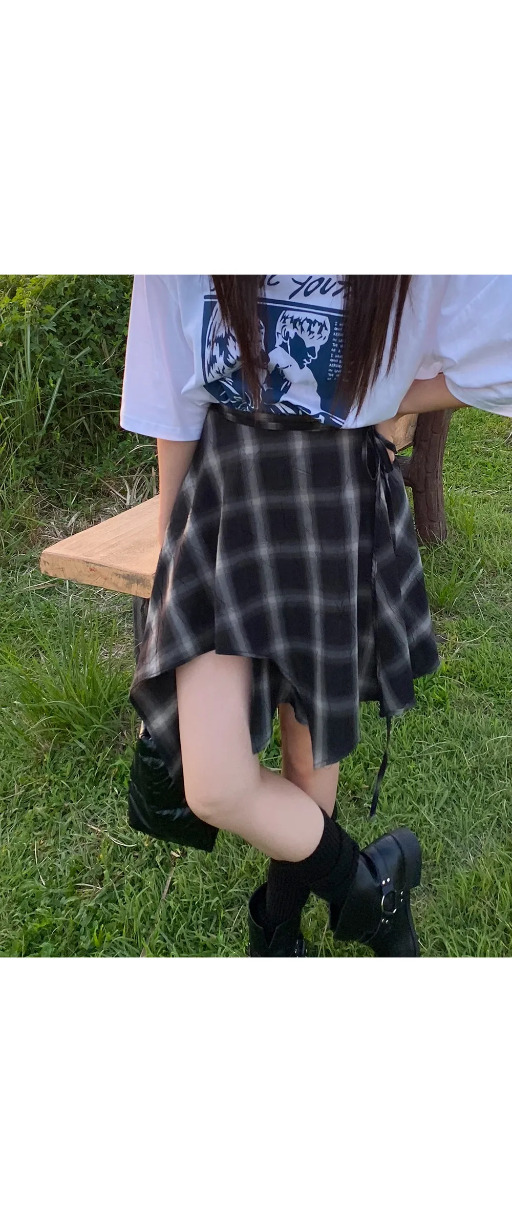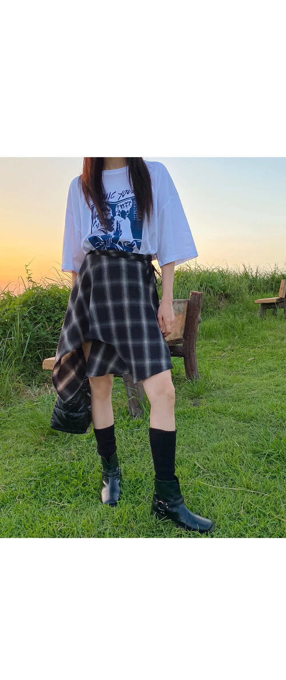 アンバランスラップチェックスカート・p587860
