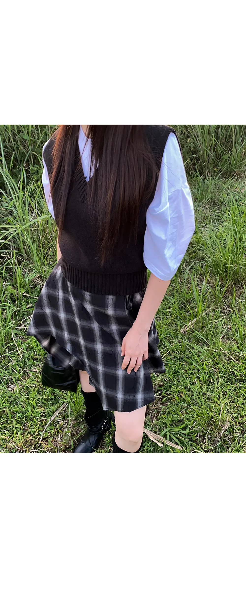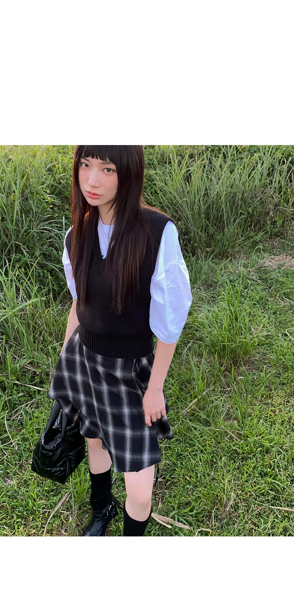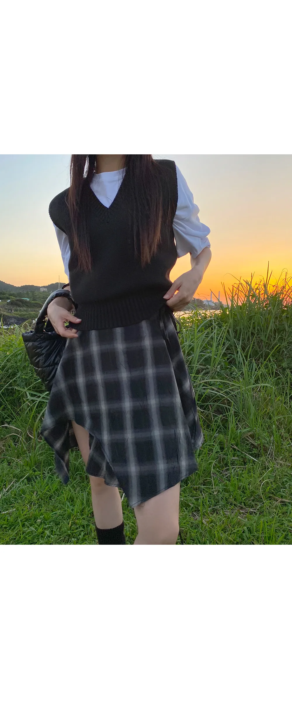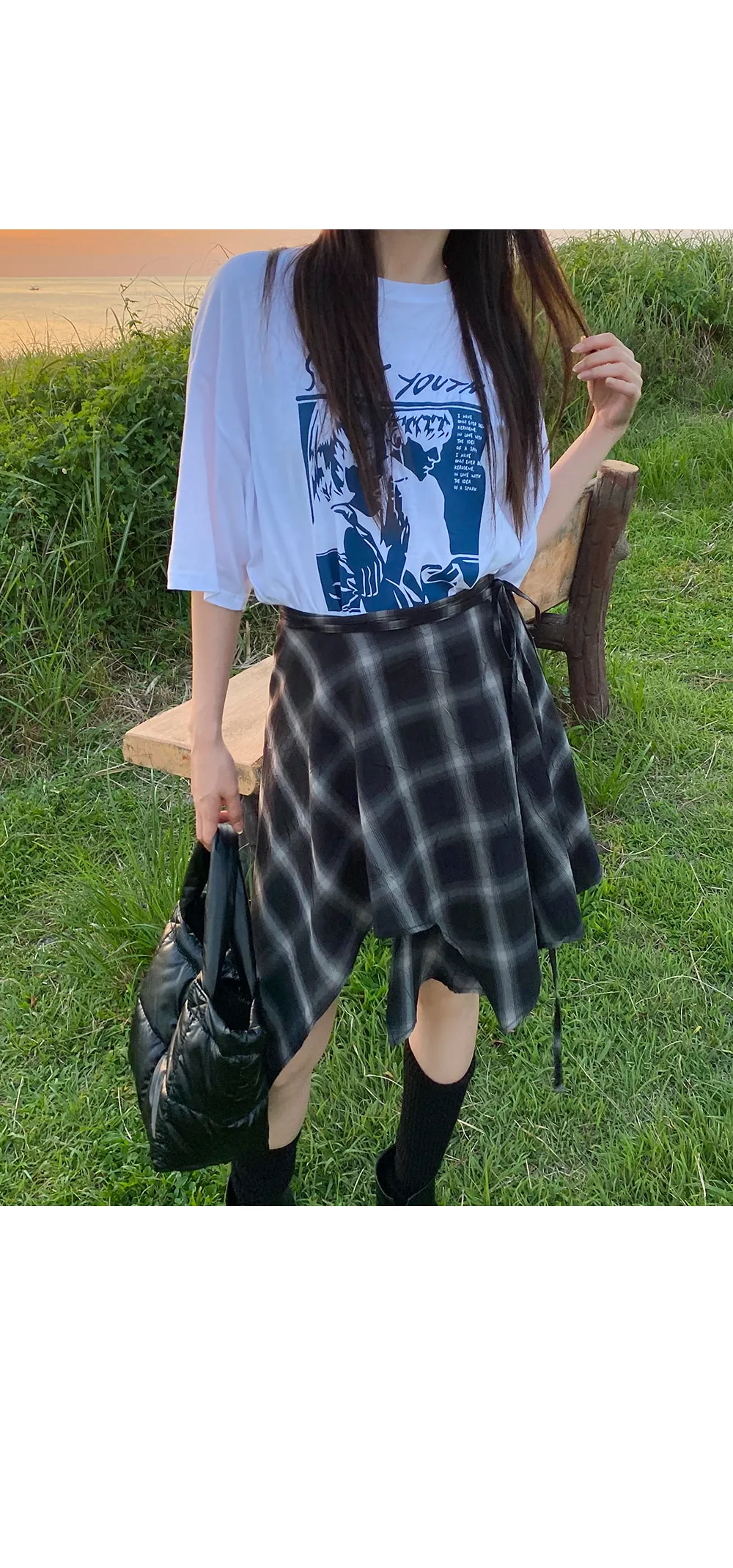 アンバランスラップチェックスカート・p587860