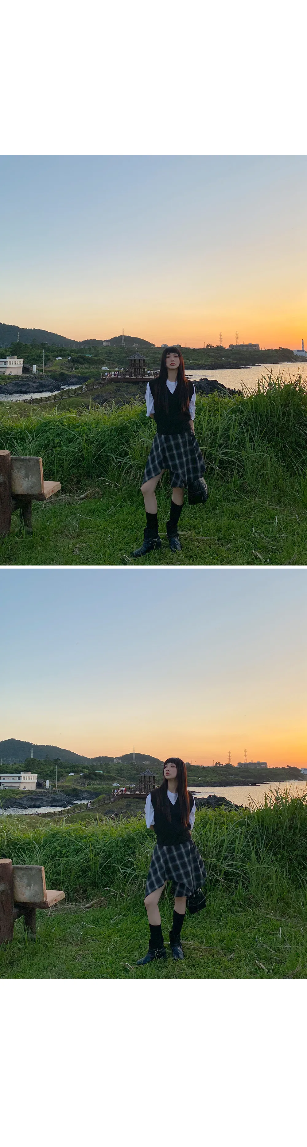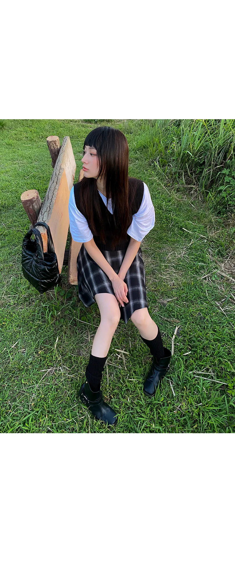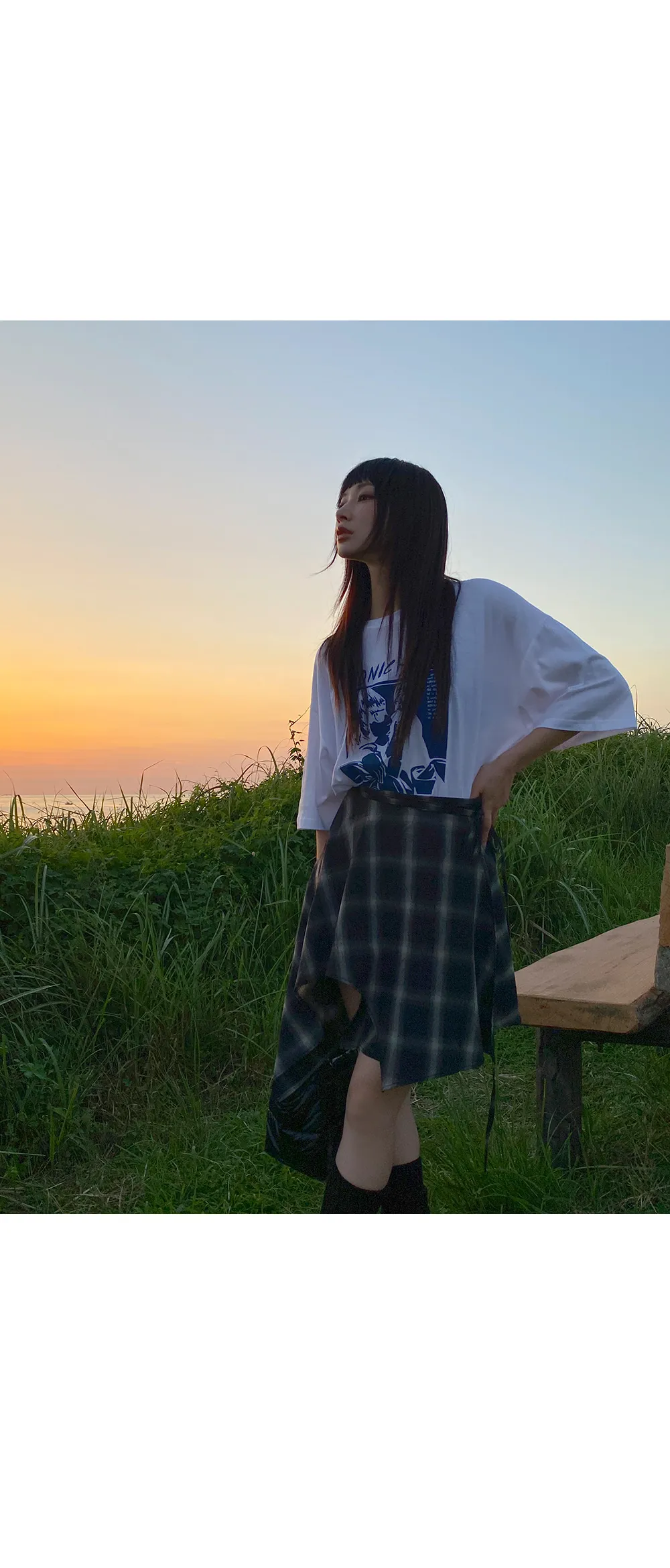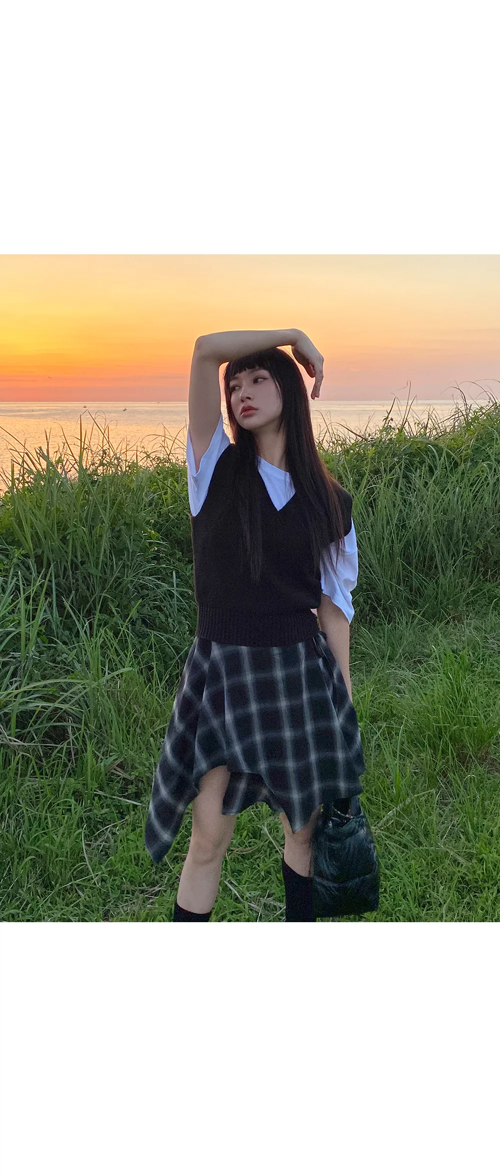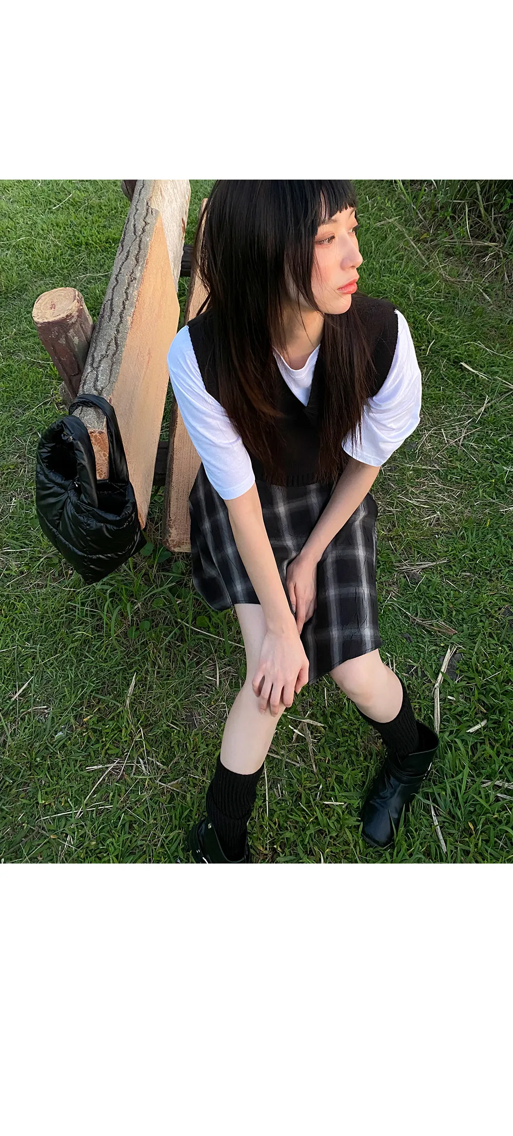 アンバランスラップチェックスカート・p587860