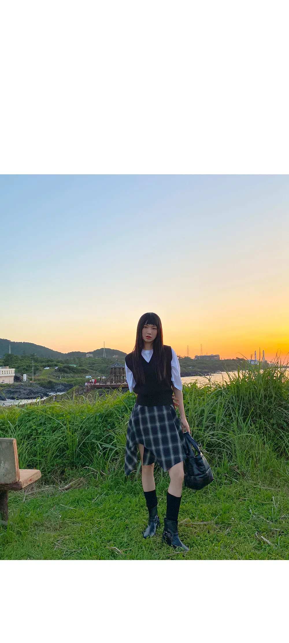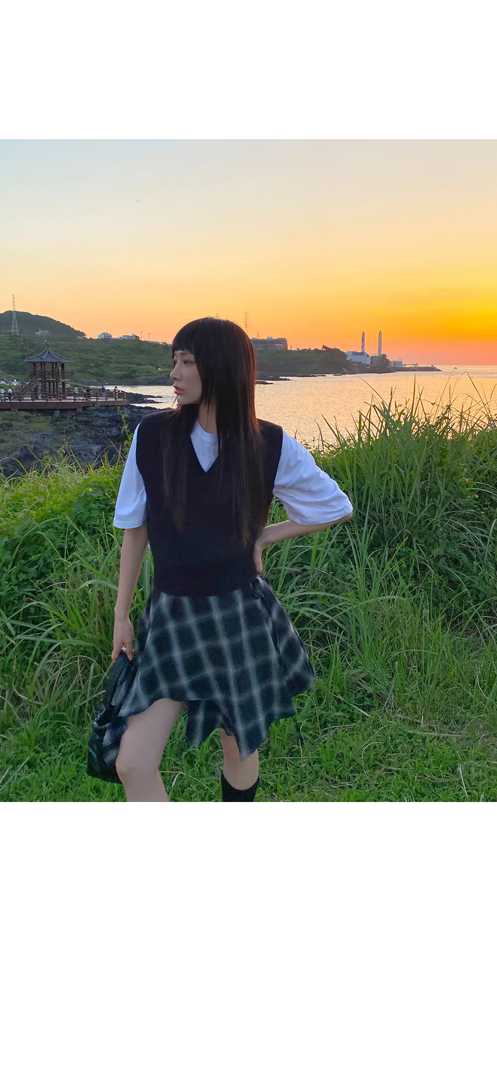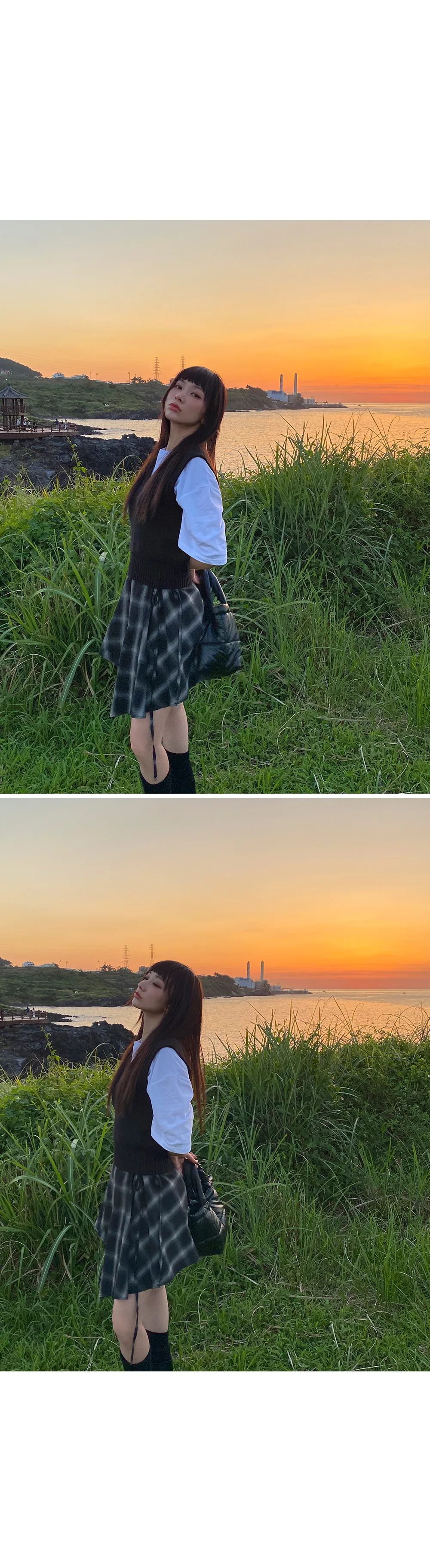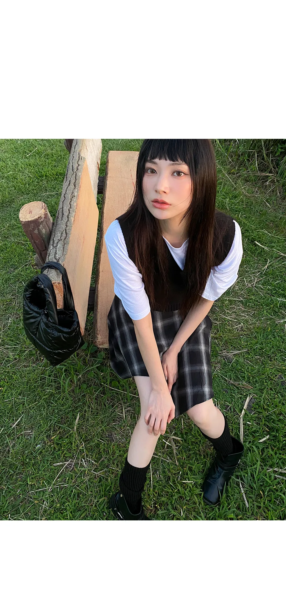 アンバランスラップチェックスカート・p587860