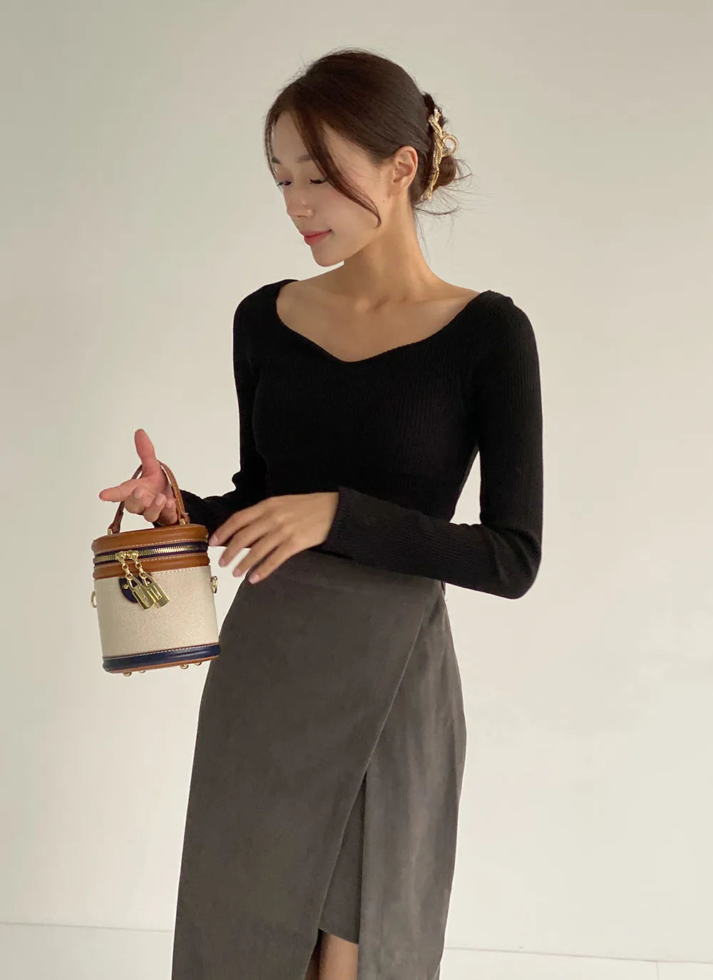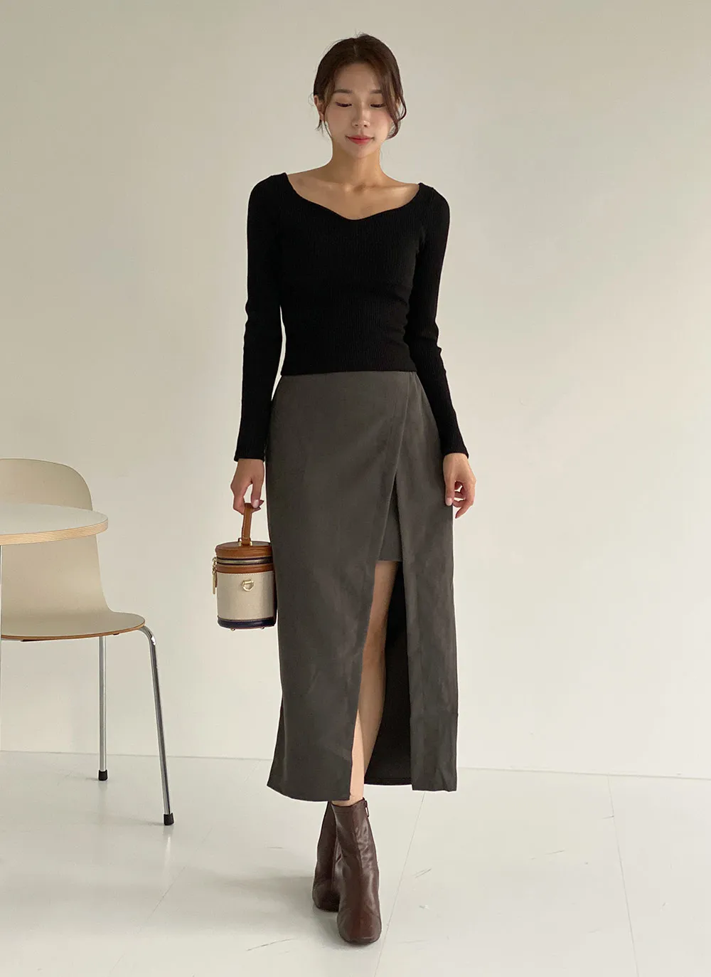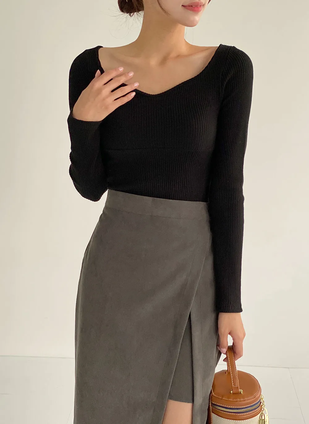 ・ハートネック ・リブ ・スリム