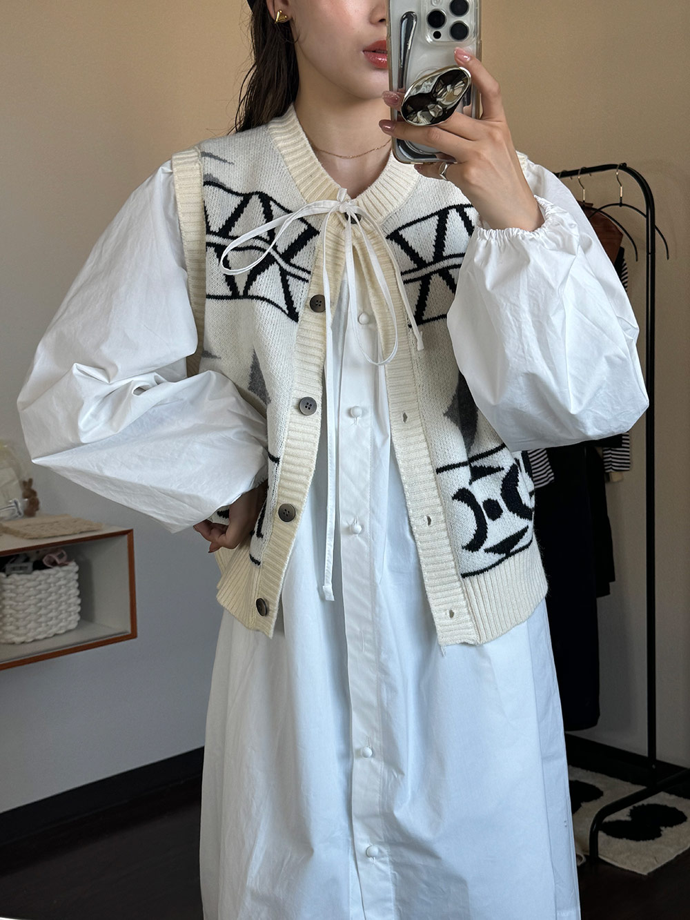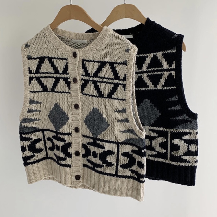 前ボタンのニットベスト✨