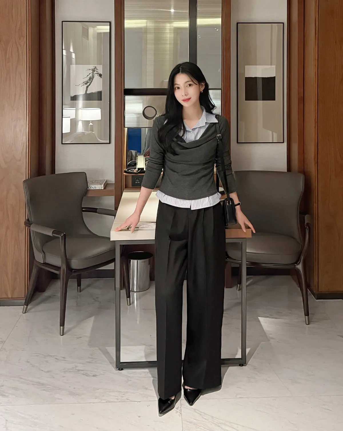 아래로는 여유 있게 떨어지는 황금 비율 와이드 실루엣