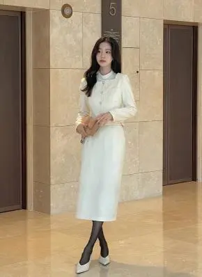 高級感がたっぷりな素材と短めのトレンディな丈感で