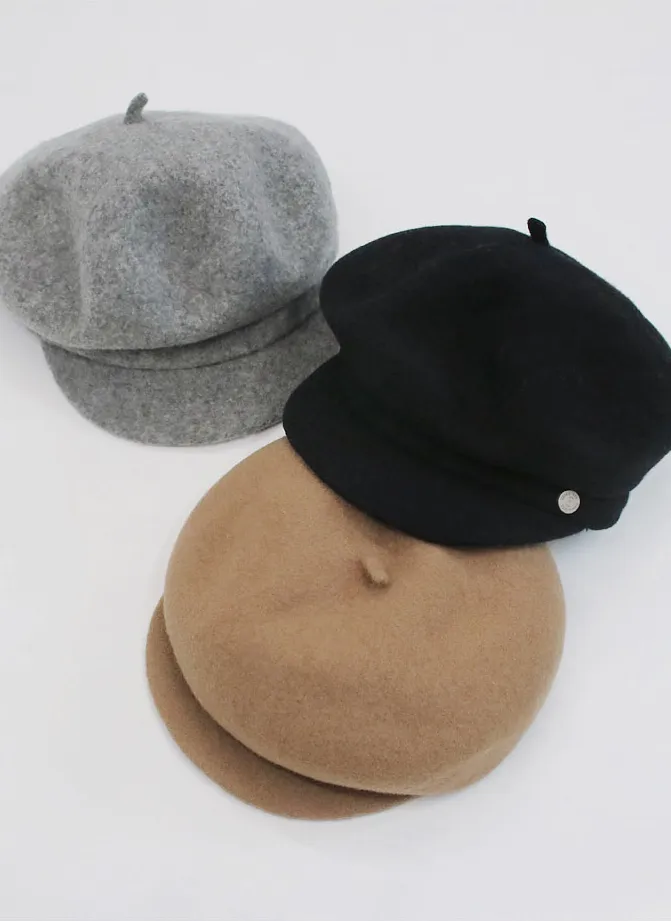 ウール混カラーベレー帽