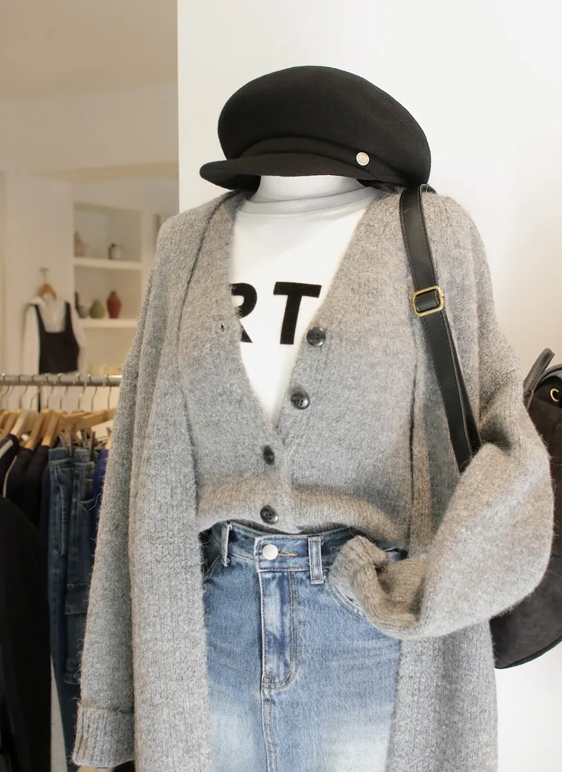 リブ長袖スリムオフショルダーニット