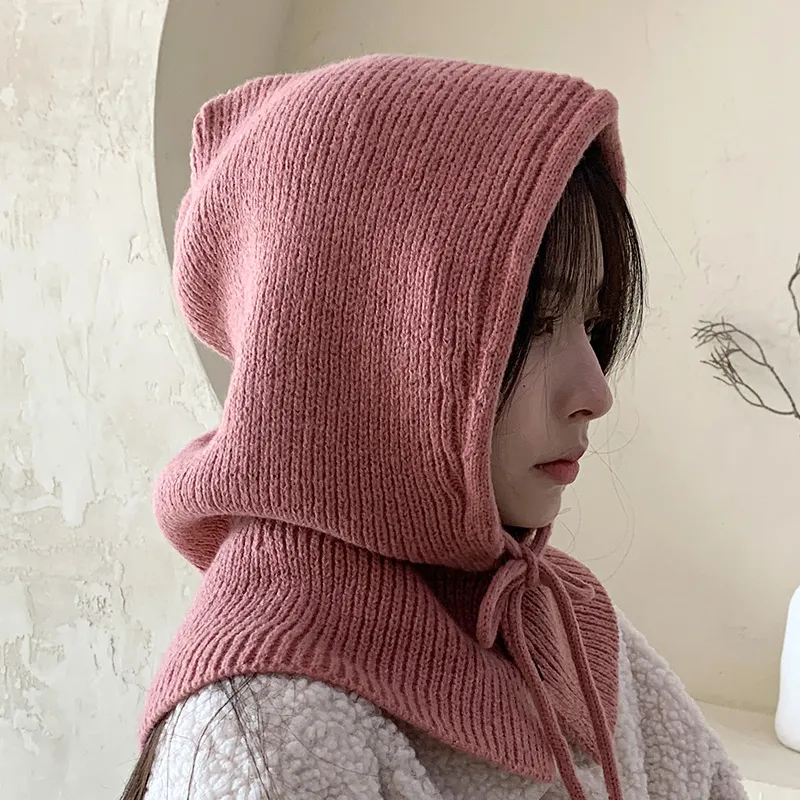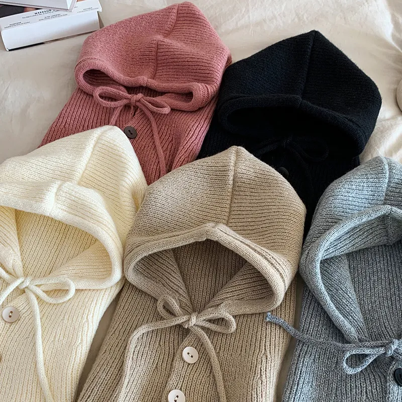 ニットリボンストラップ帽子バラクラバ