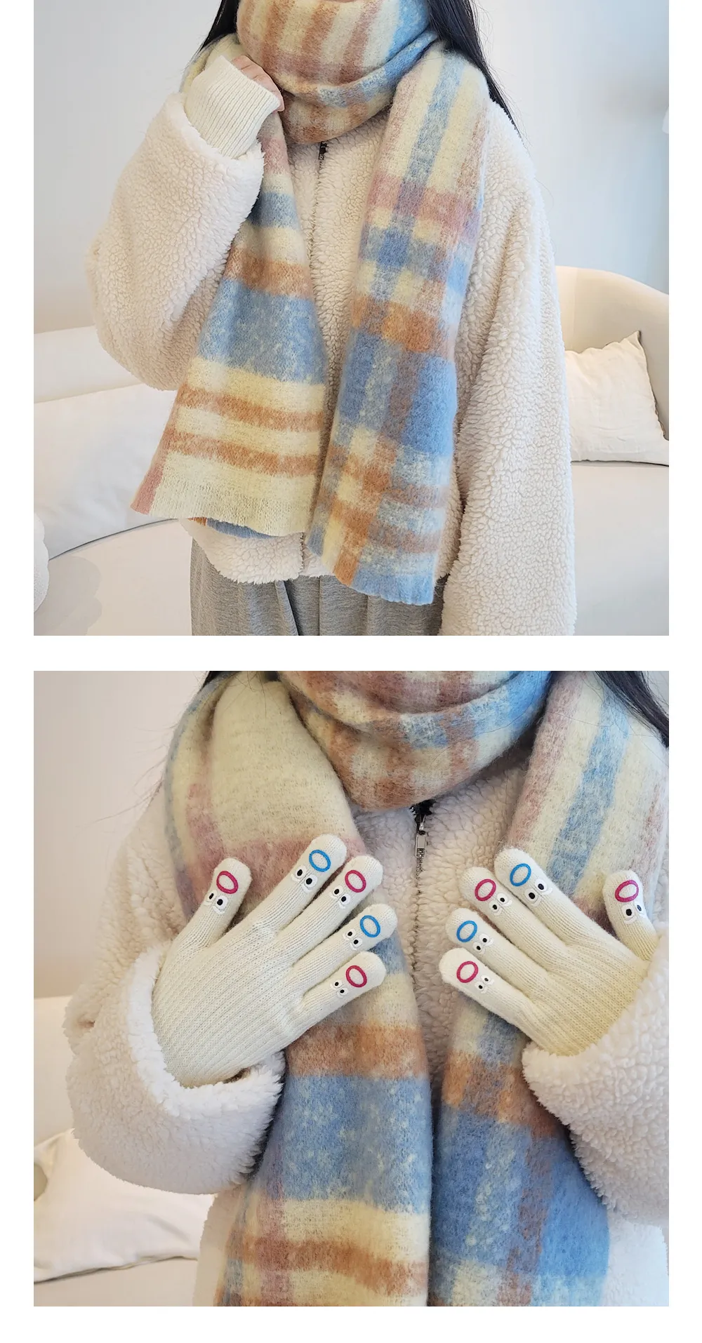 ヘアリーチェックワイドマフラー