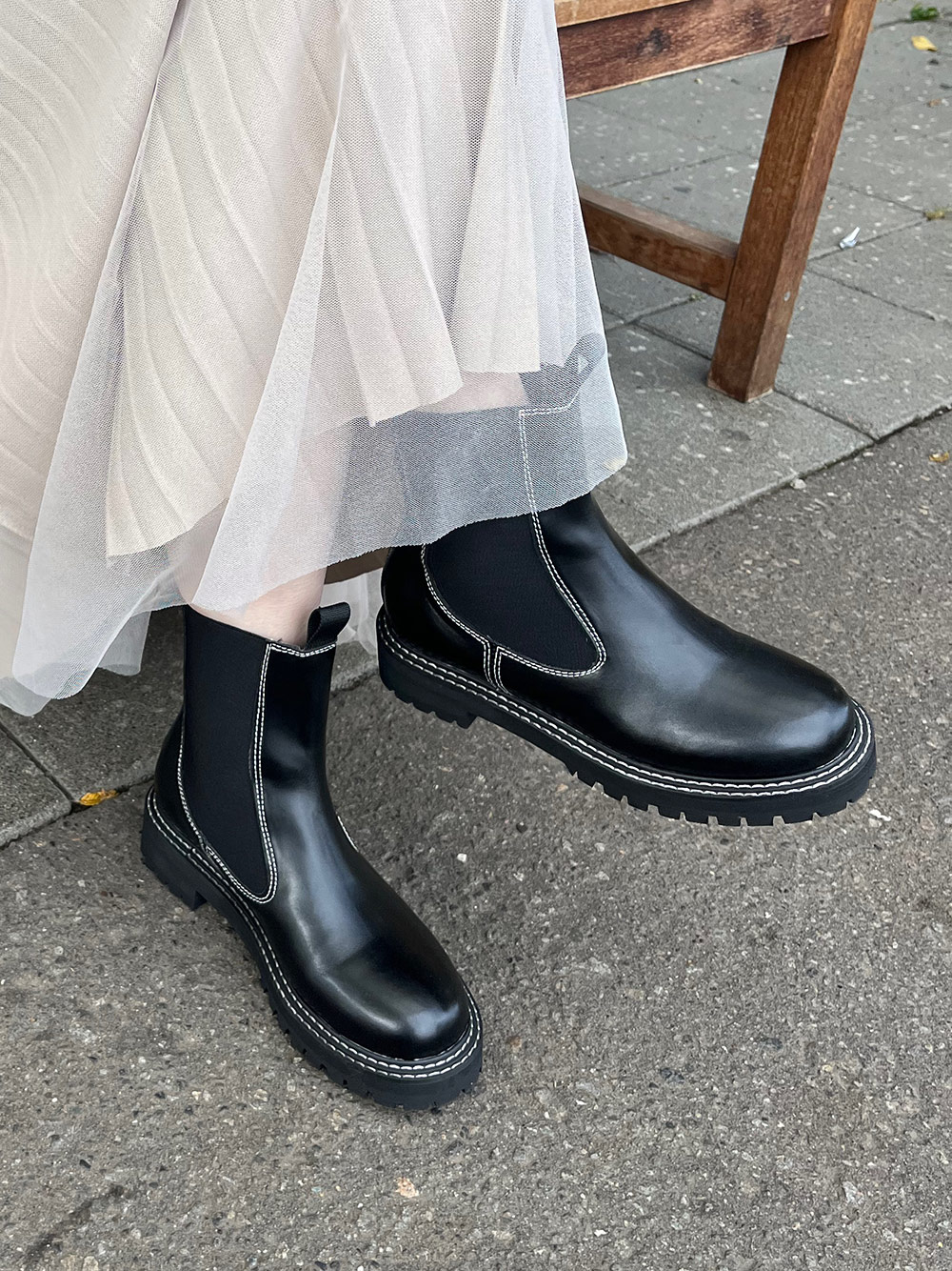 白ステッチが可愛いサイドゴアブーツです!