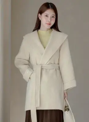 [beidelli made]ストラップ付ウールスタンドカラーボクシーコート