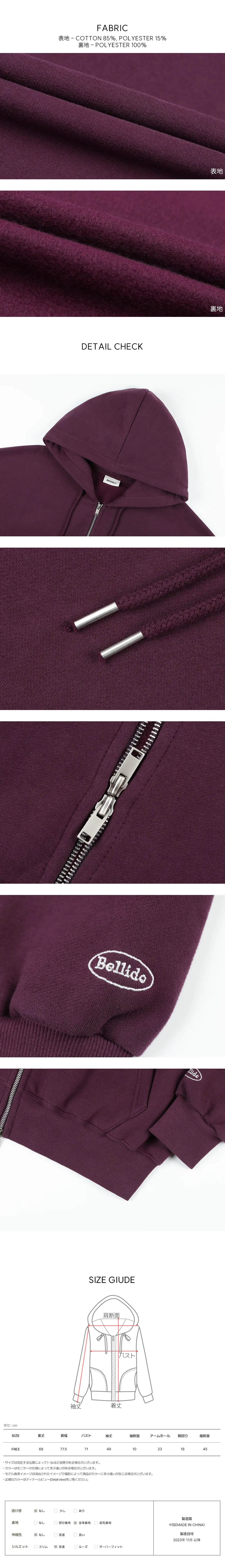 着用 : ホワイト / FREE,ネイビー / FREE,ワイン / FREE,パープル / FREE