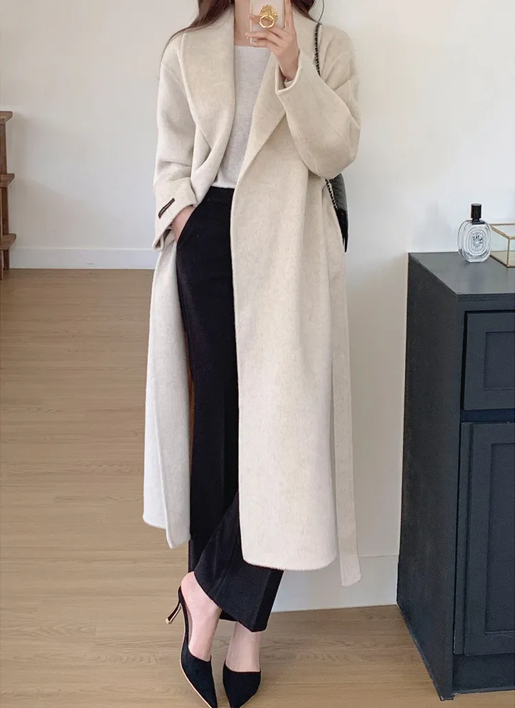 厚手のウール生地を薄く圧縮し、ミシンで縫製後、