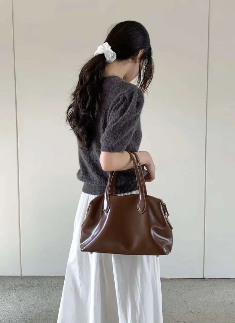 レザー調ミニビンテージジップアップトートバッグ