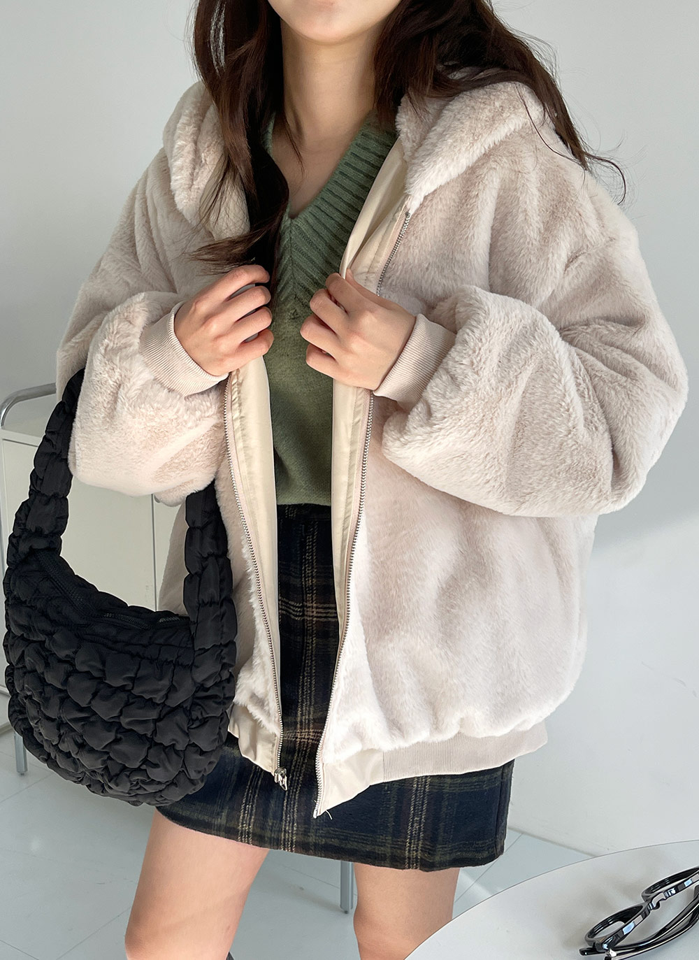 カジュアルなフードをかぶれば保温性UP↑