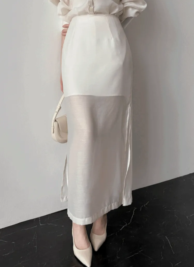 シースルーロングスリットスカート