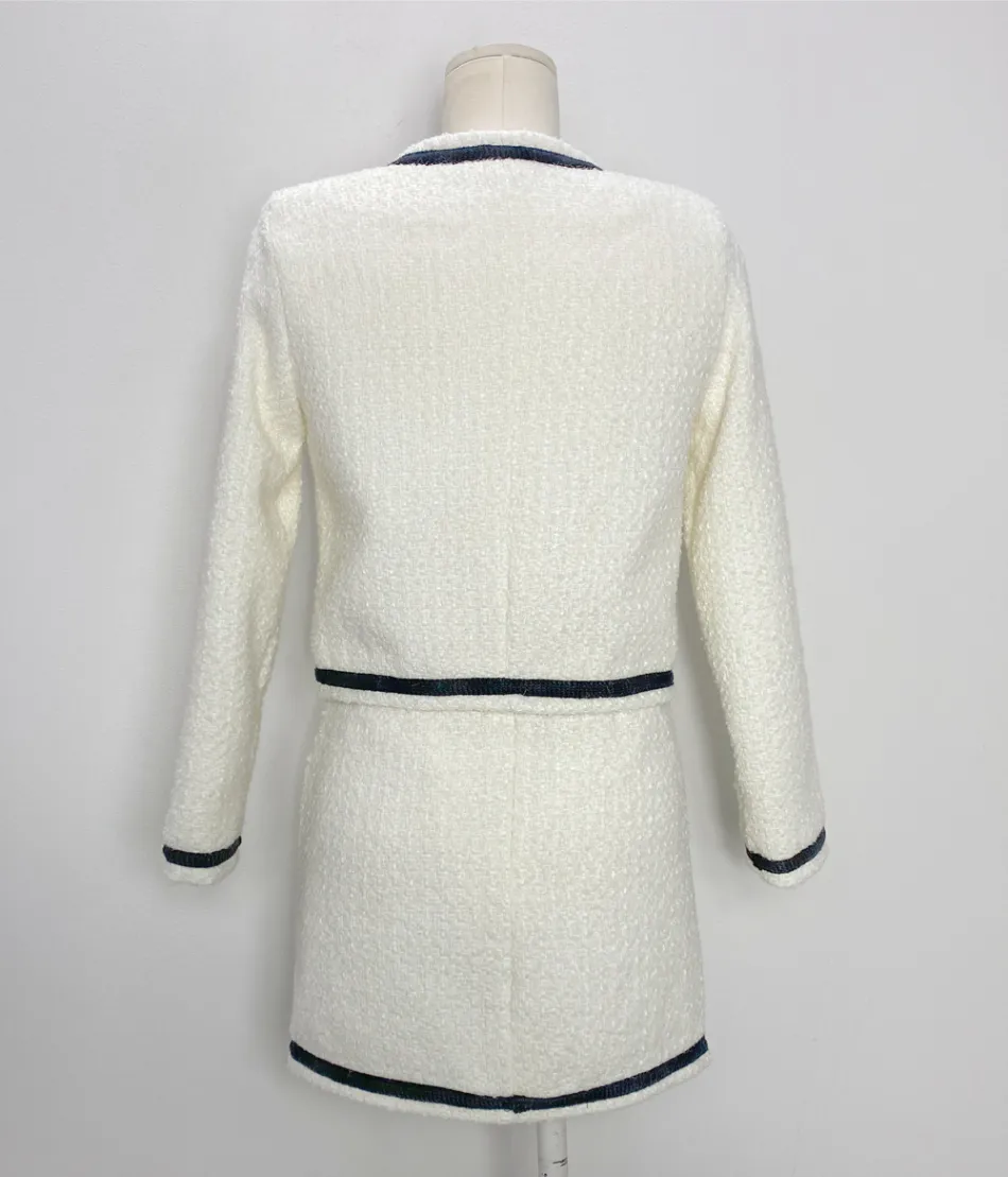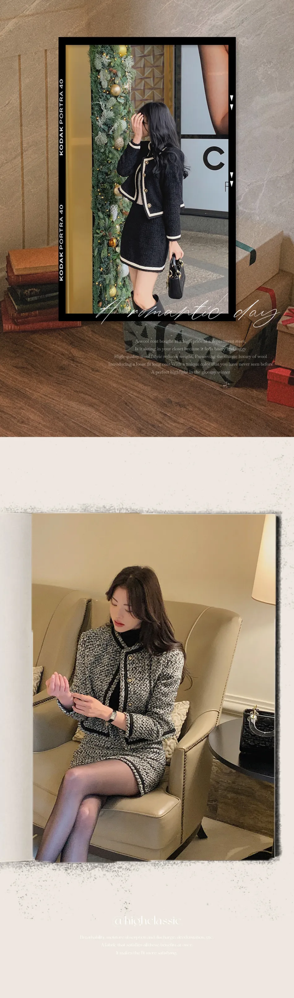 ふわっとした細かく編まれたツイード生地で高級感をプラス