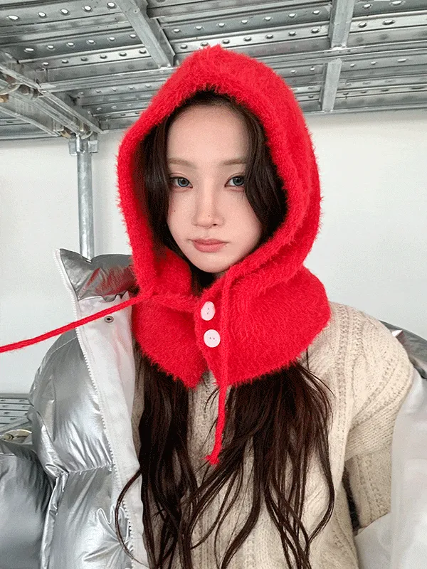 ウール混アンゴラ混ボタンバラクラバ