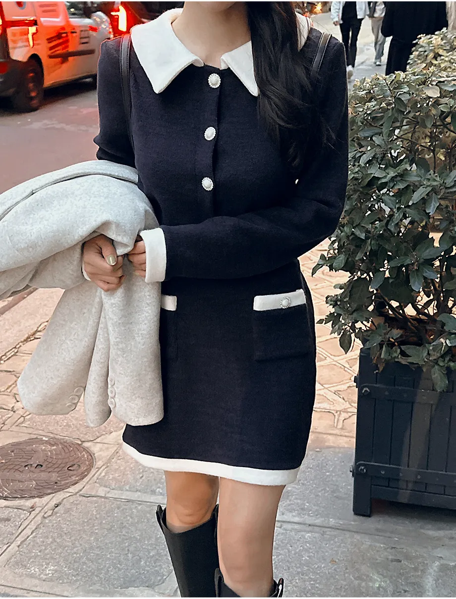 シンプルデザインに配色カラーネックと刺繍ディテールがポイントをプラスし