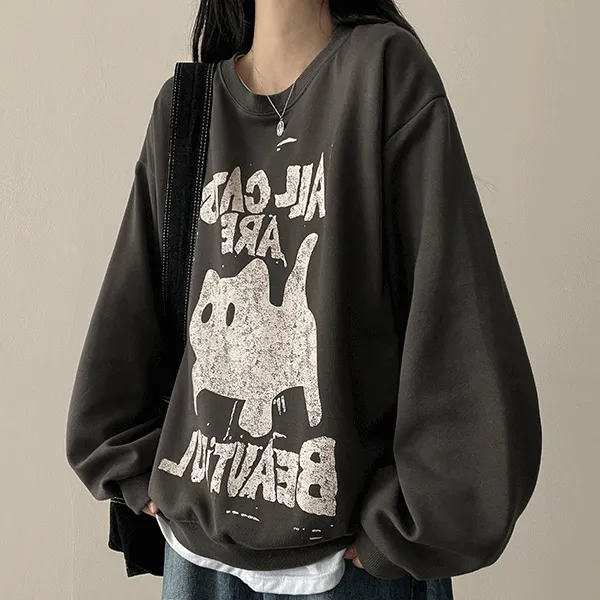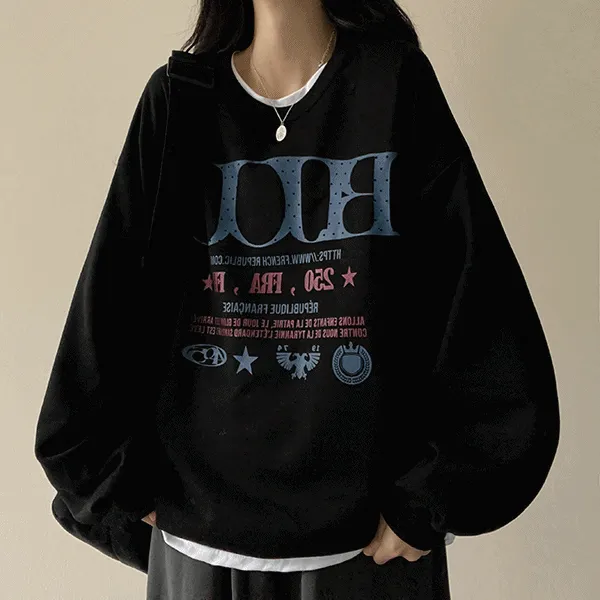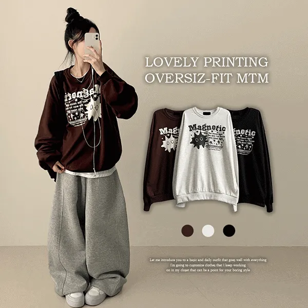 ラウンドネックオーバーサイズプリントスウェット