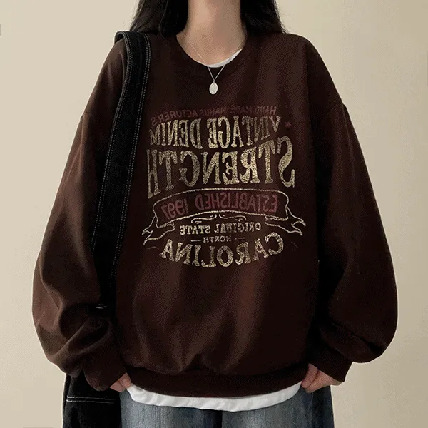 ラウンドネックビンテージプリントスウェット