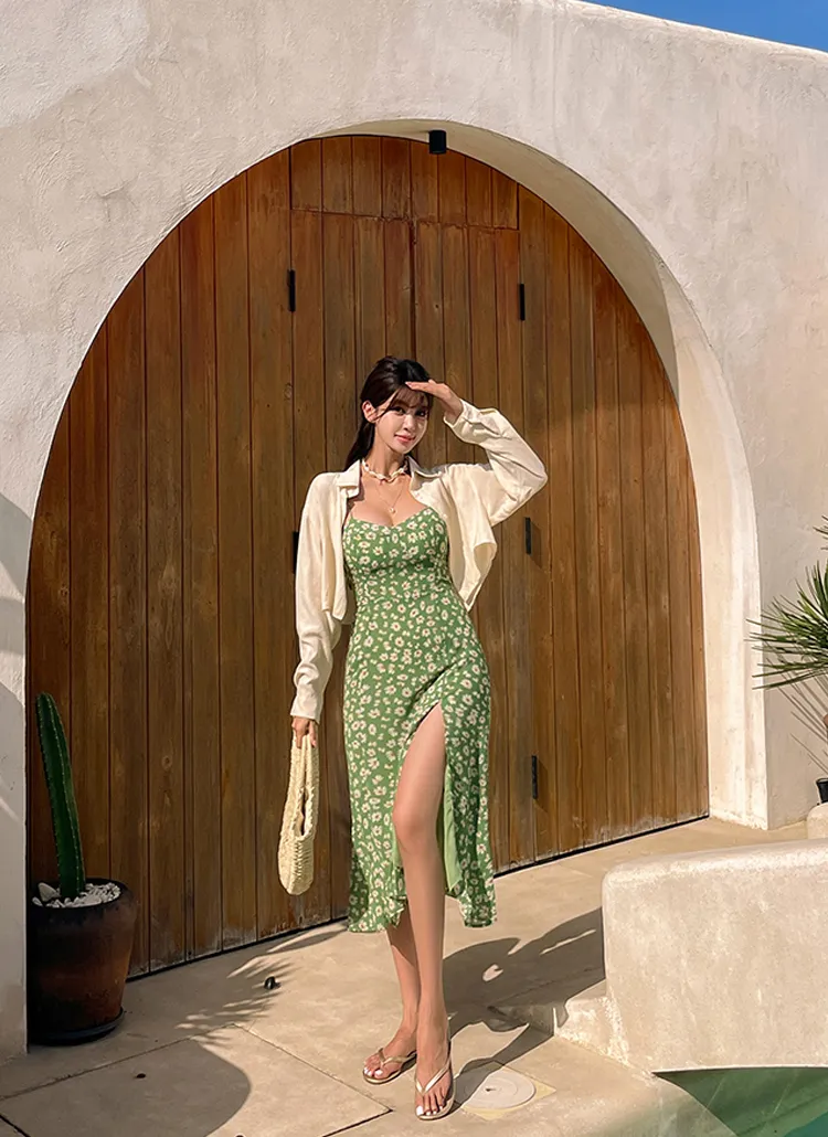 肩幅 : 24 バスト幅(後ゴム) : 34.5 着丈(肩ひも除く) : 97 ウエスト幅 : 31 スリット長さ : 45.5