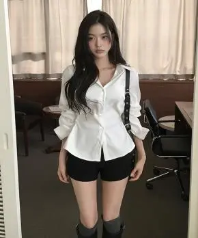 ウエストボタンスリムシンプルシャツ