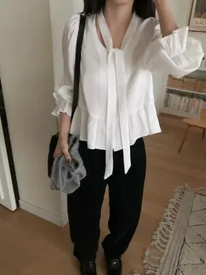 OFFICEコーデにぴったりのカシュクールブラウス。
