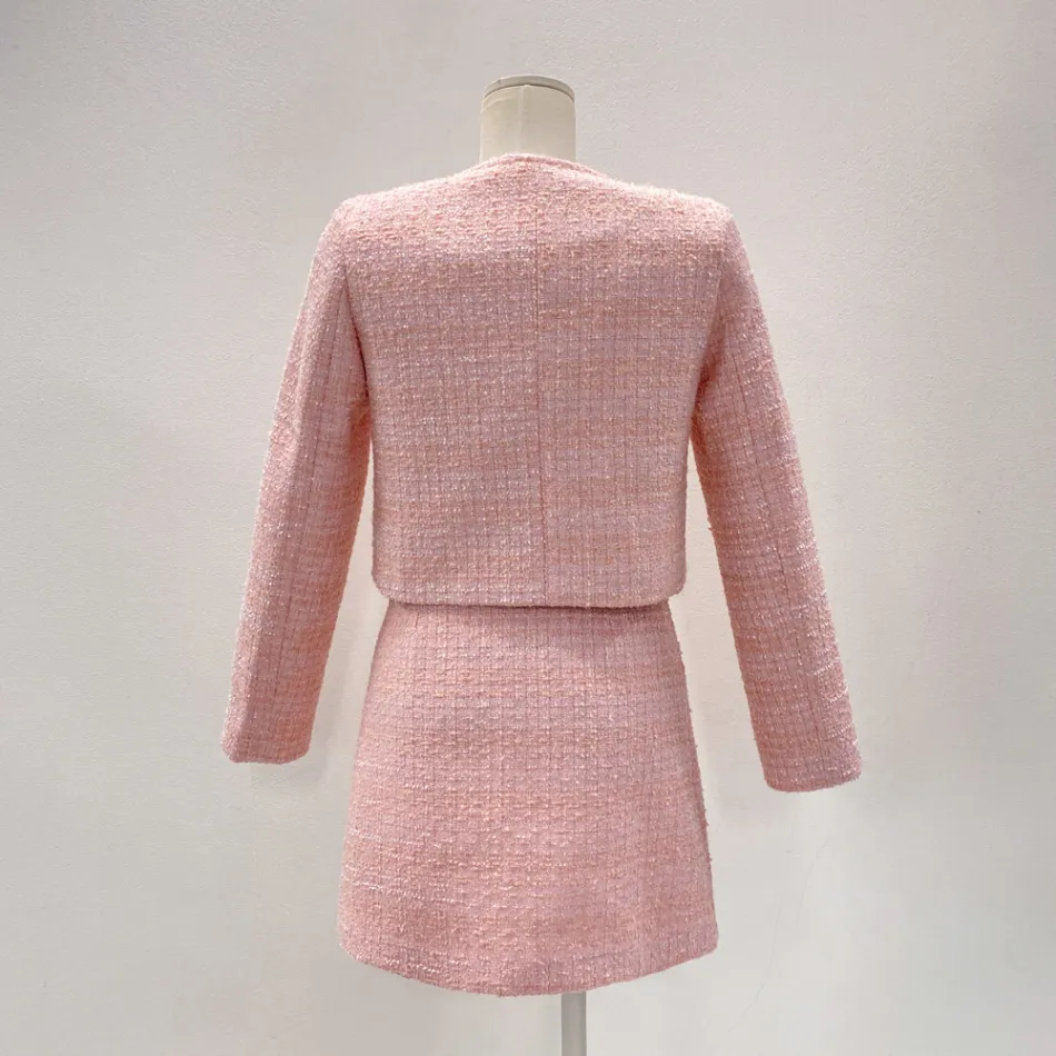 洗練された女性らしいムードのツイードツーピースをご紹介します。