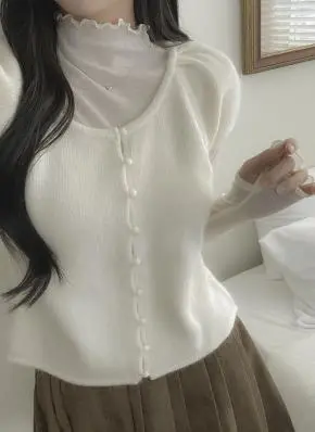 しっかりとした編み目のリブ編みニットカーディガンで