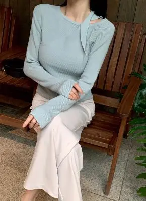 長めの袖がかわいいシンプルなリブニット。