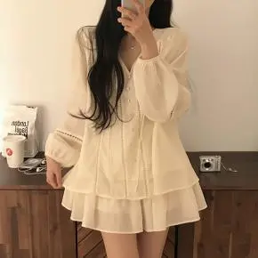 ツイードウール混ラウンドネックプリーツ肩パッドライン長袖ビジューボタンシークレットボタンダブルボタンツーピース(トップス、ボトムス)スカートダブルジャケット