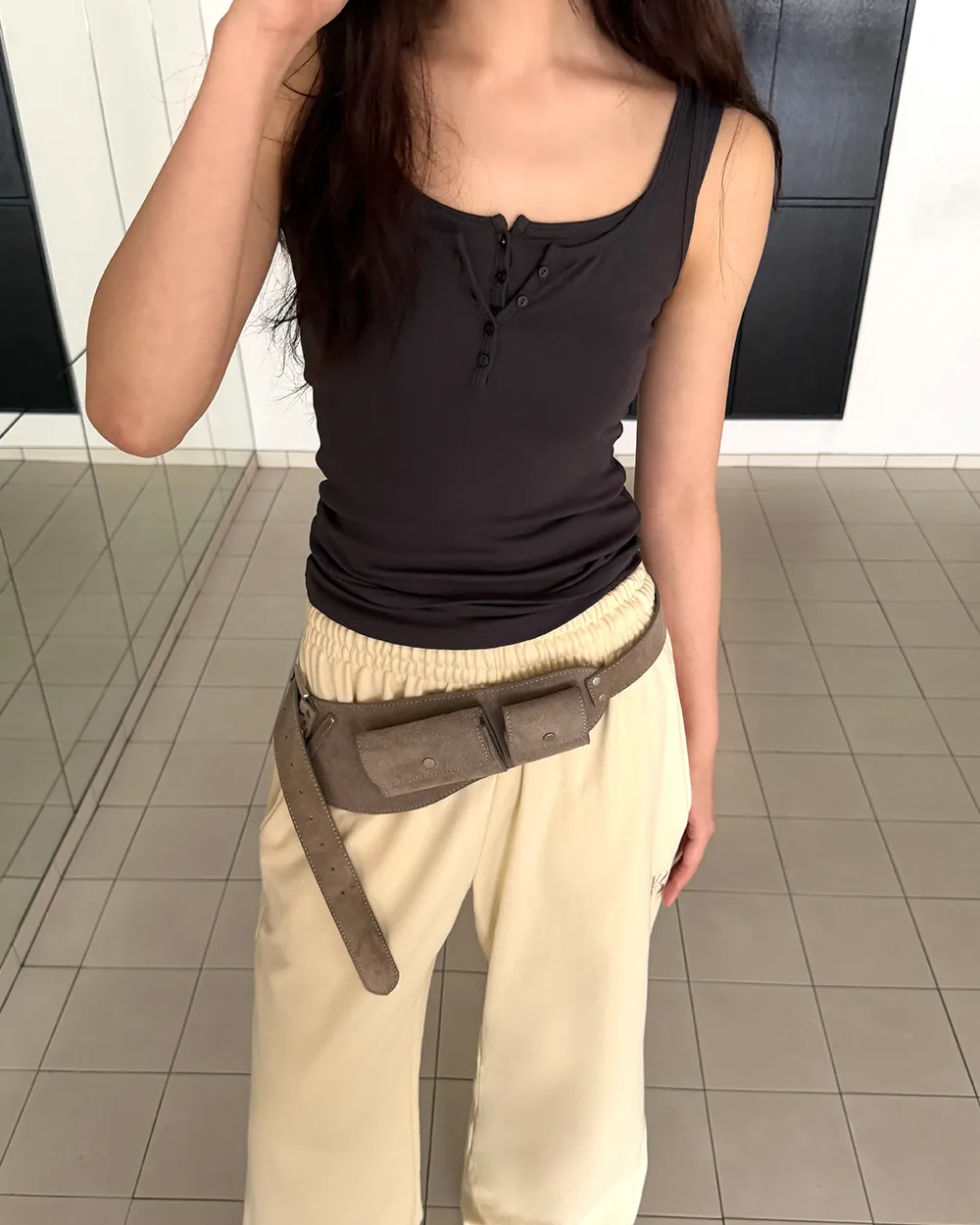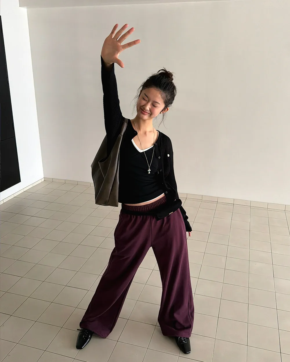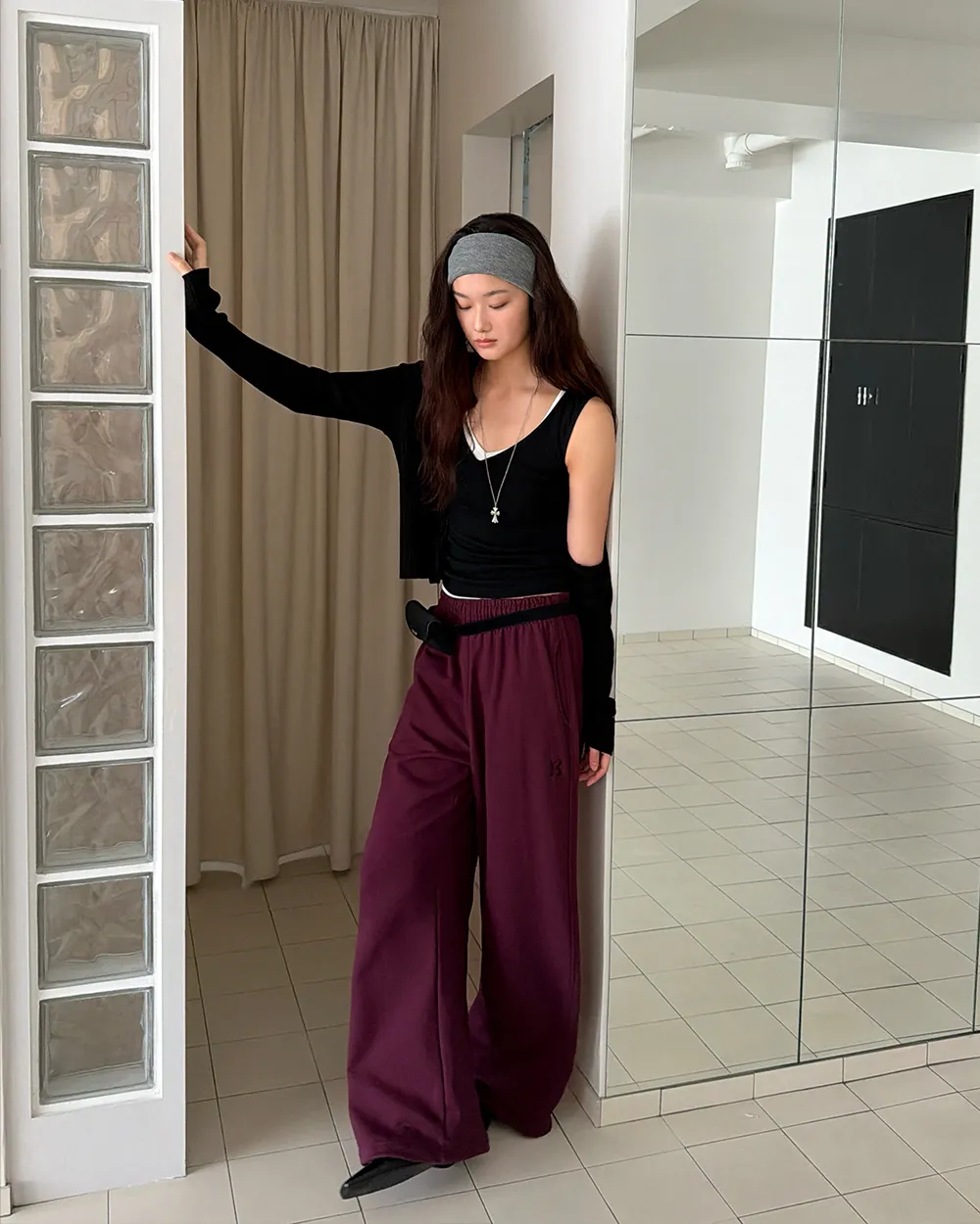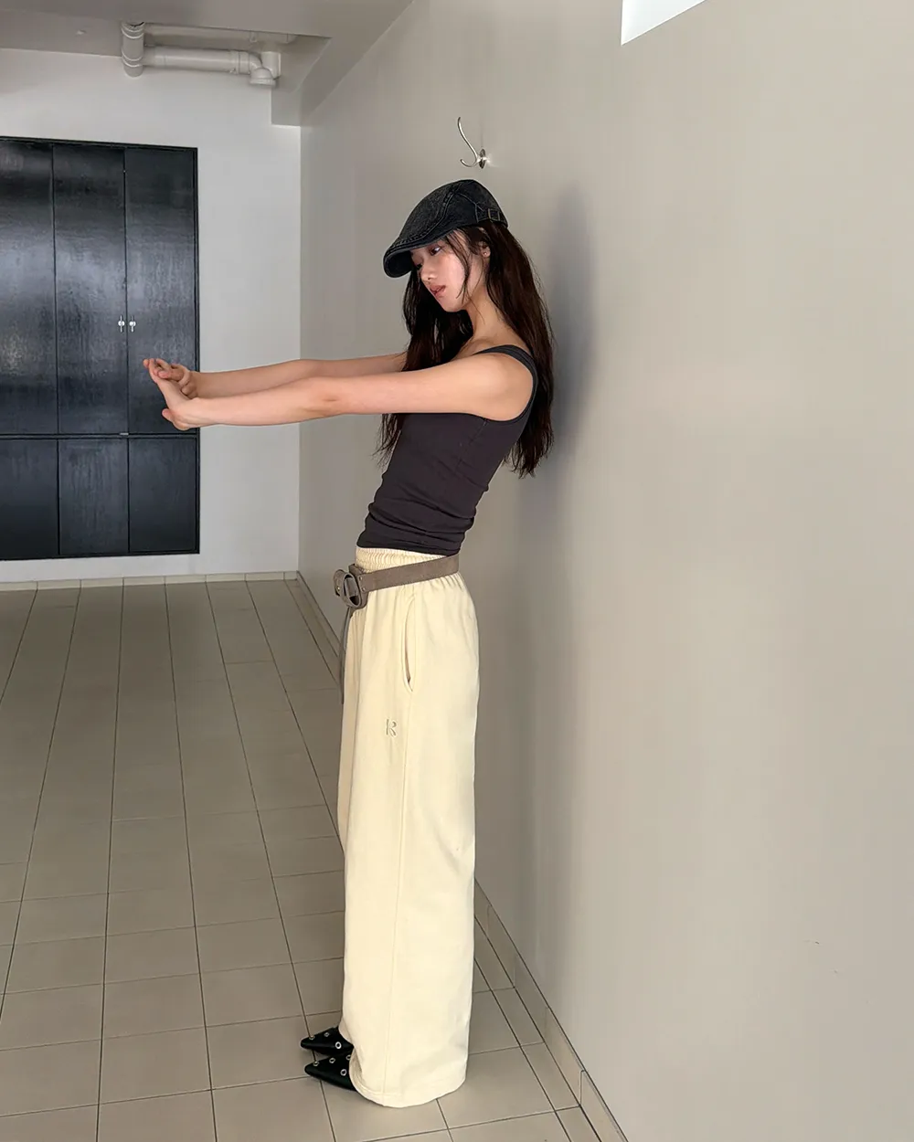 クロップドTシャツとスタイリッシュなムードの完成!