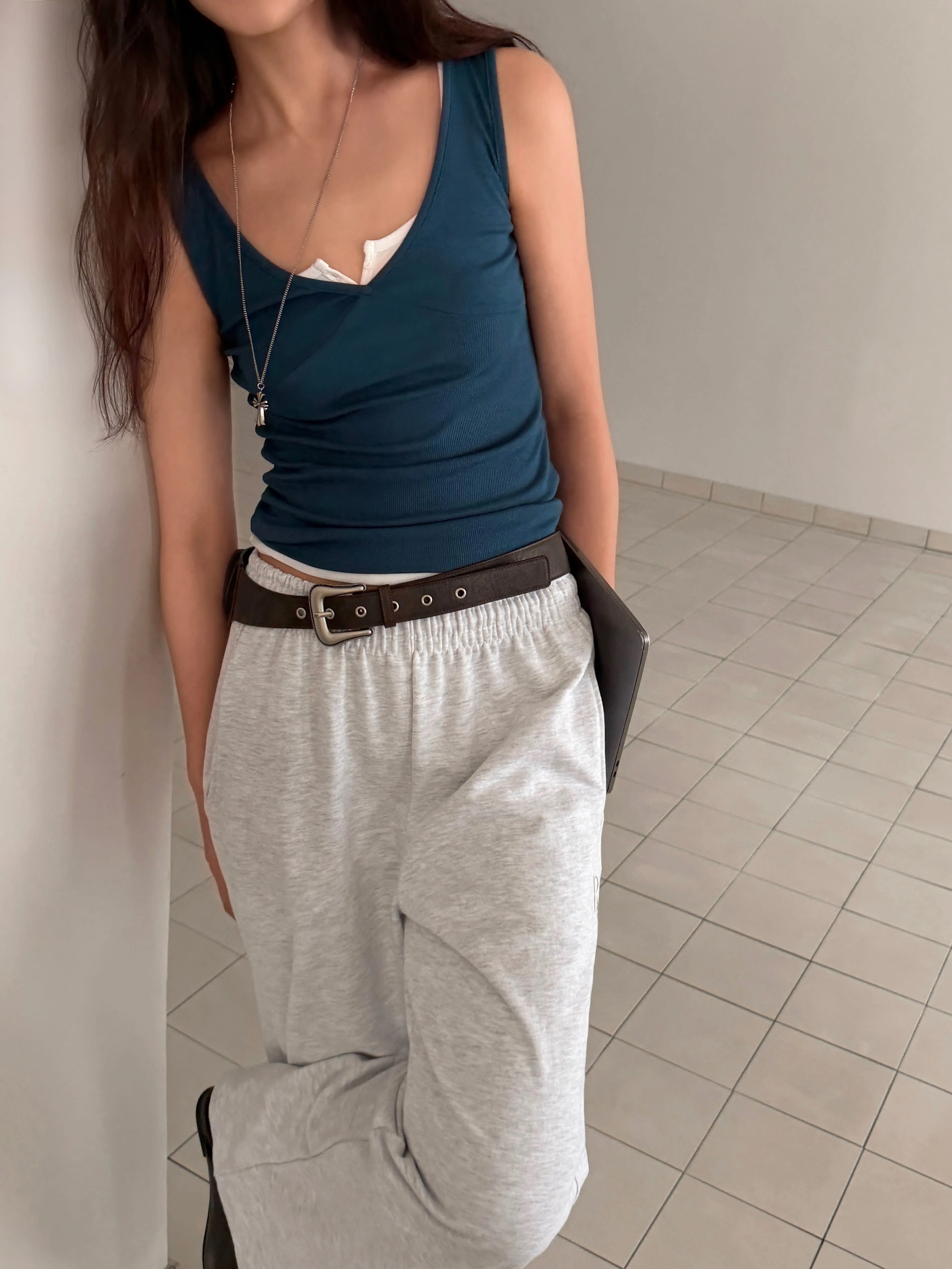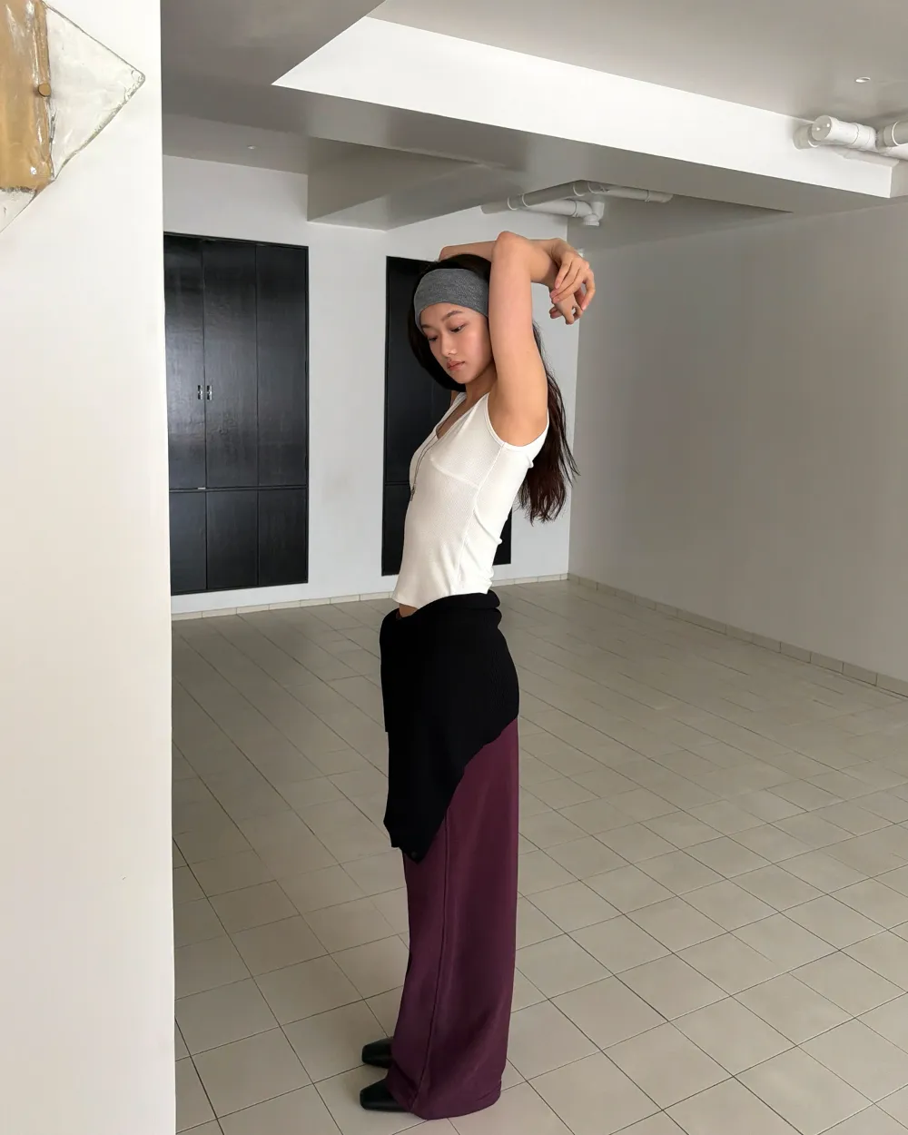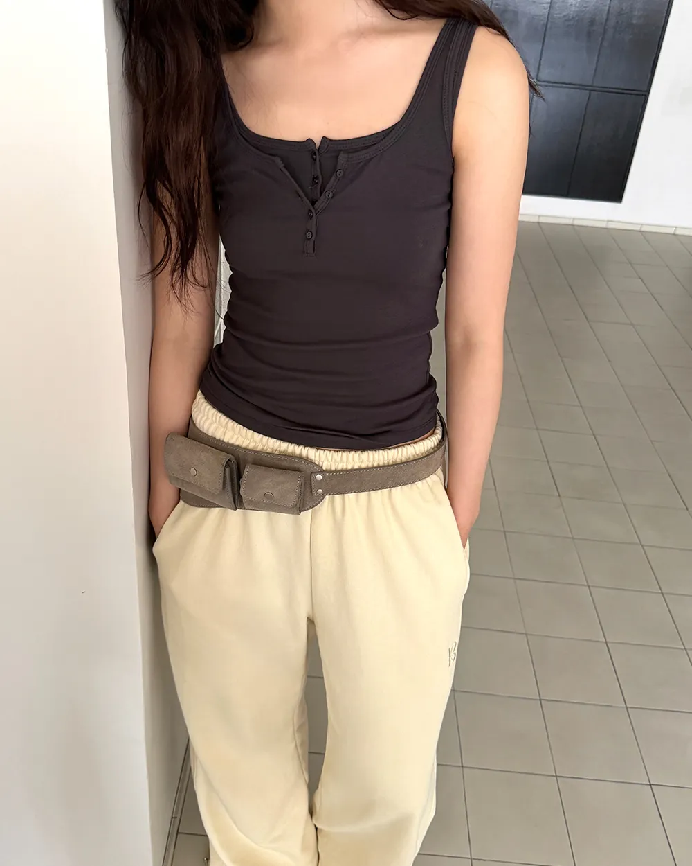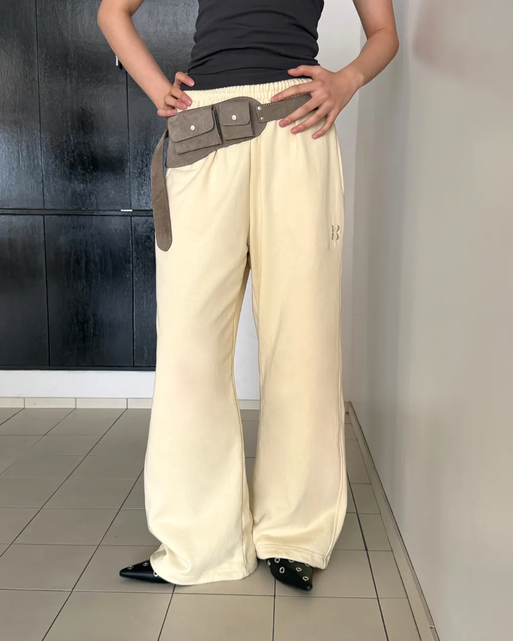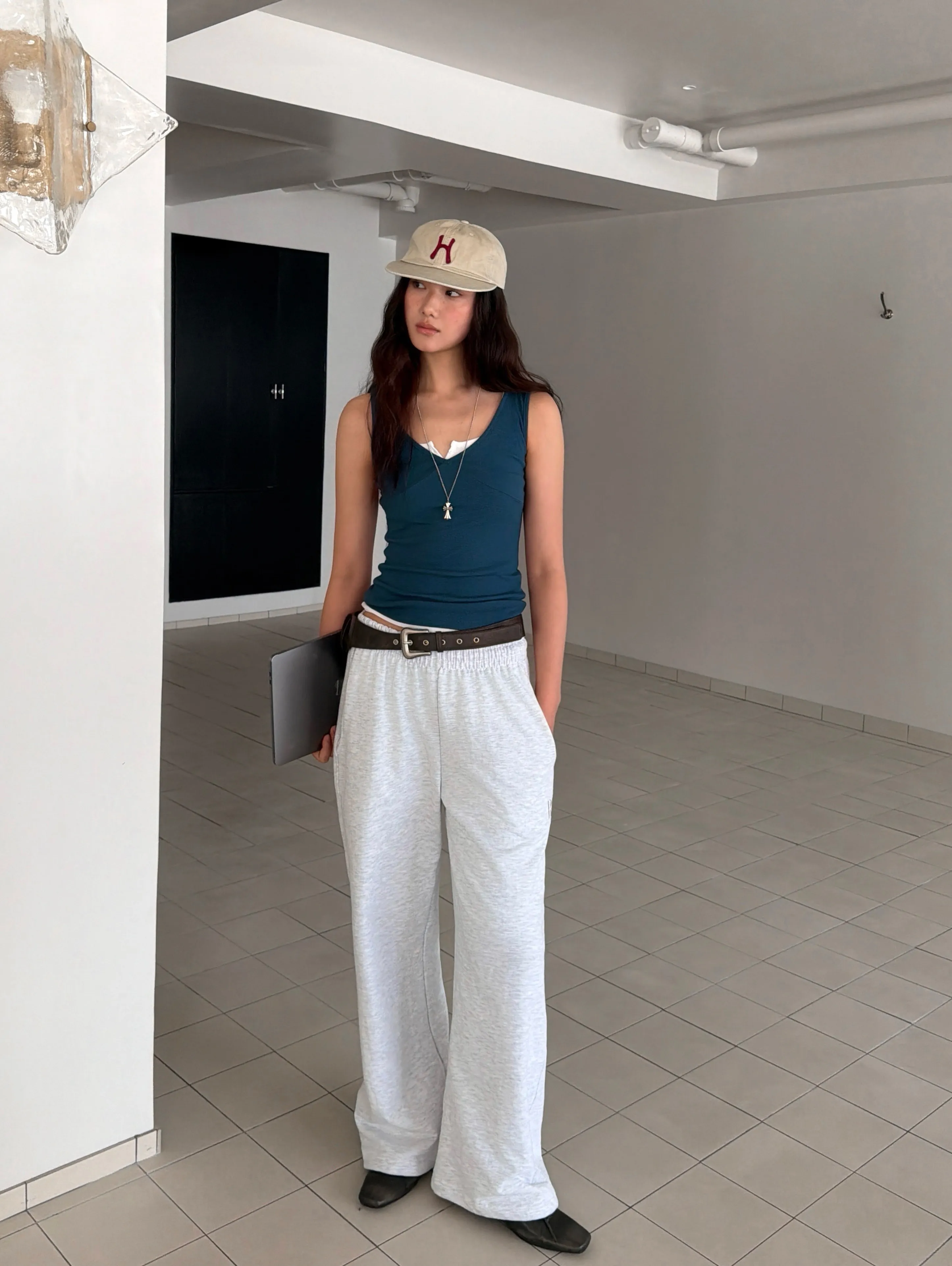 クロップドTシャツとスタイリッシュなムードの完成!