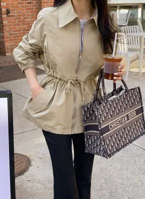 コットンジップアップハイネックゴムポケットオーバーサイズ長袖フラップポケットボタンスリーブスタッズスナップボタンハーフドロップショルダー無地ジャンパー