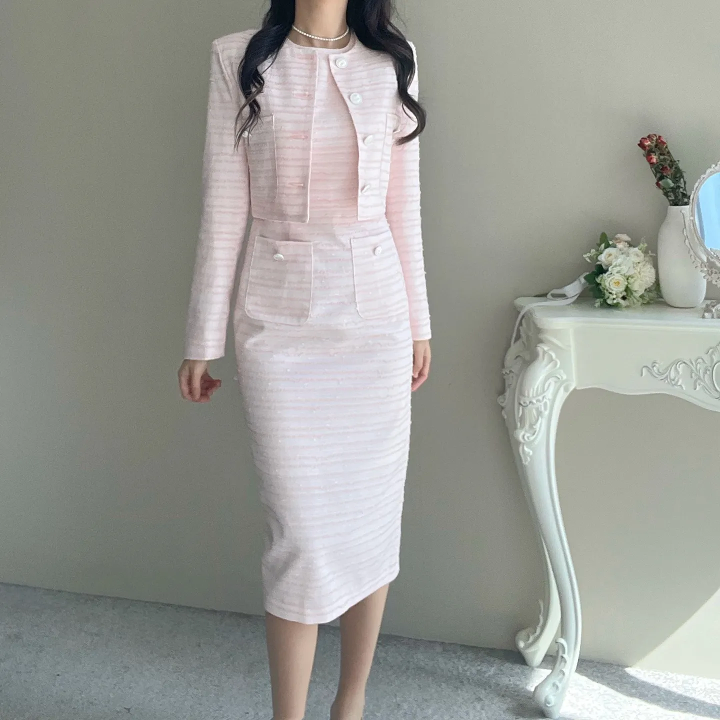 着用 : ブラック / S,ピンク / S