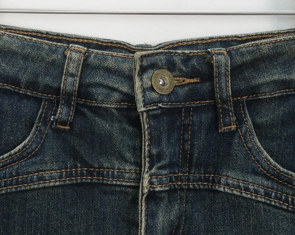 暗めのデニムカラーにイエローのウォッシュ加工がされ