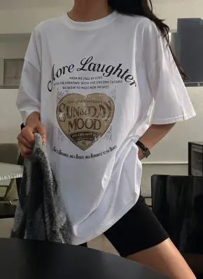 コットンラウンドネックルーズ半袖ロゴTシャツ
