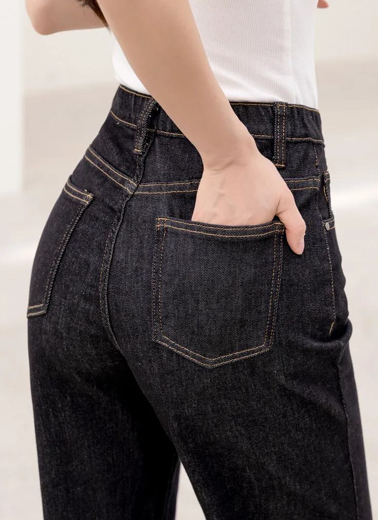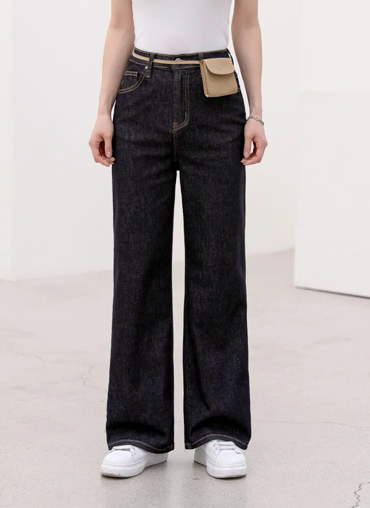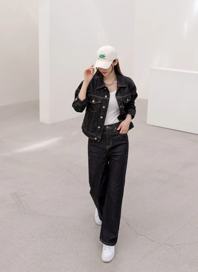 デニムベーシックショートループリベットジップアップリボン(固定)ワイドバックポケットポケットフラップポケットウォッシングディープブルーデニムパンツ[選べる丈]