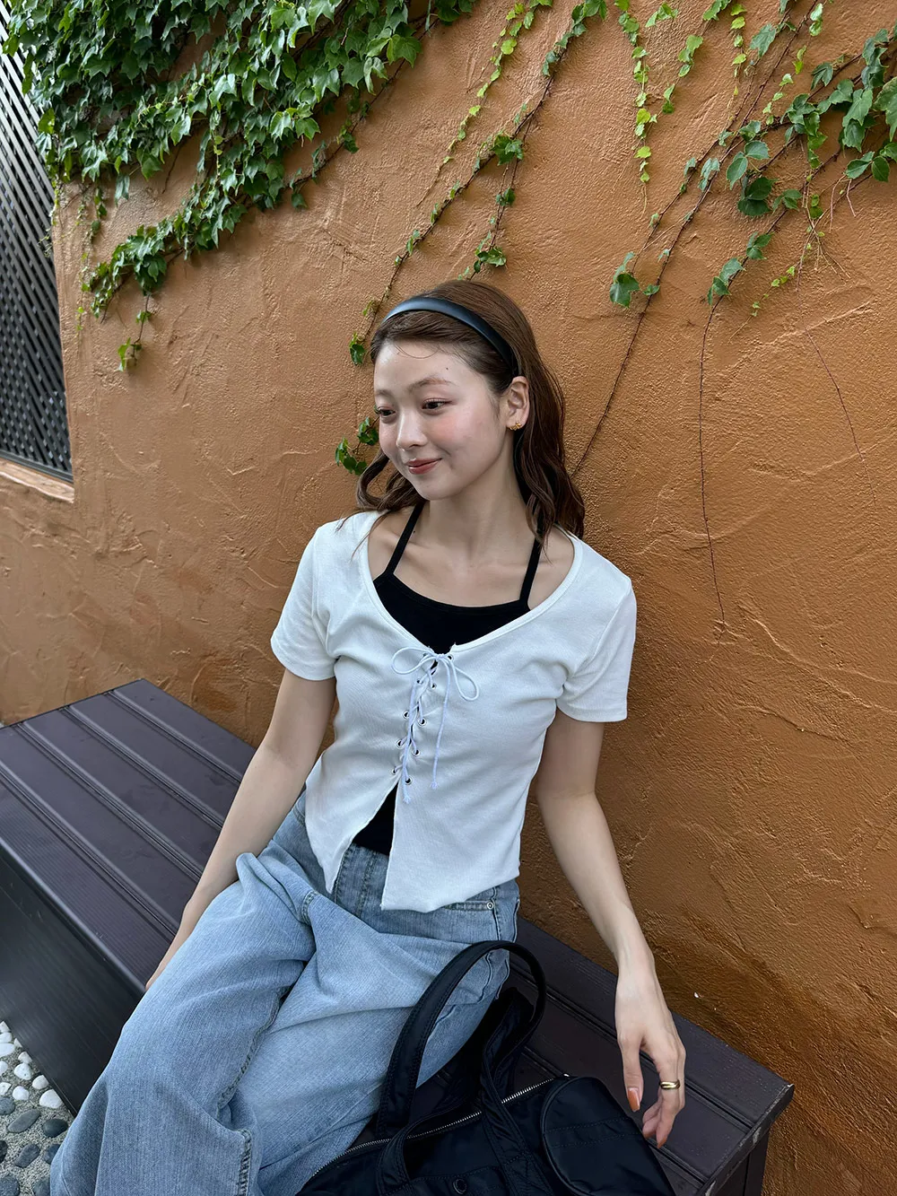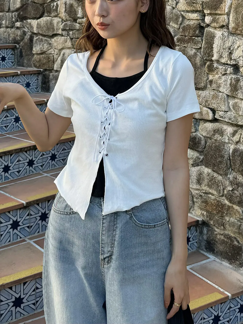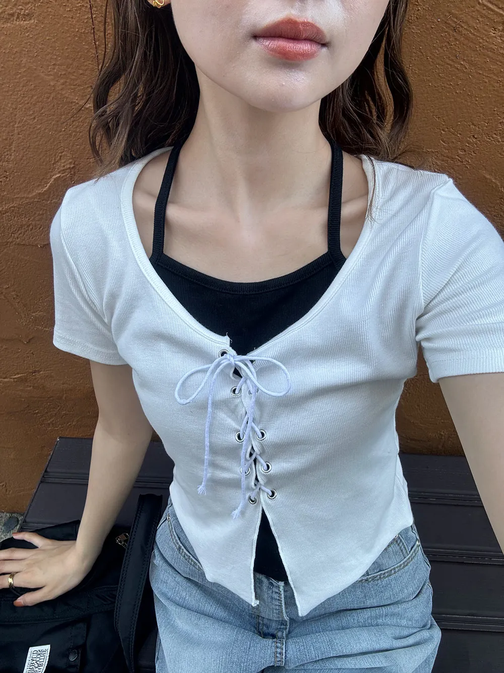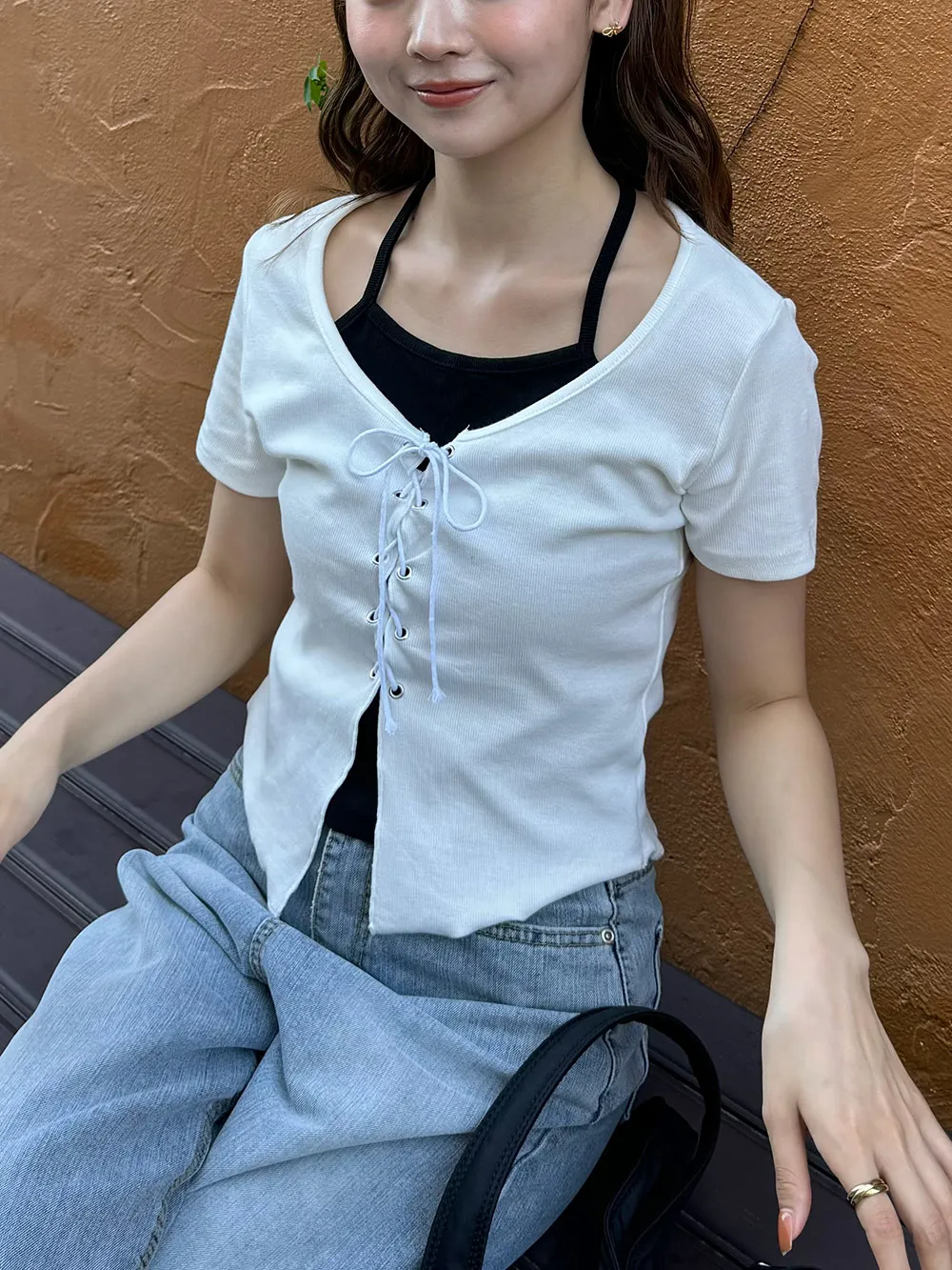 キャミソールとレースアップデザインの