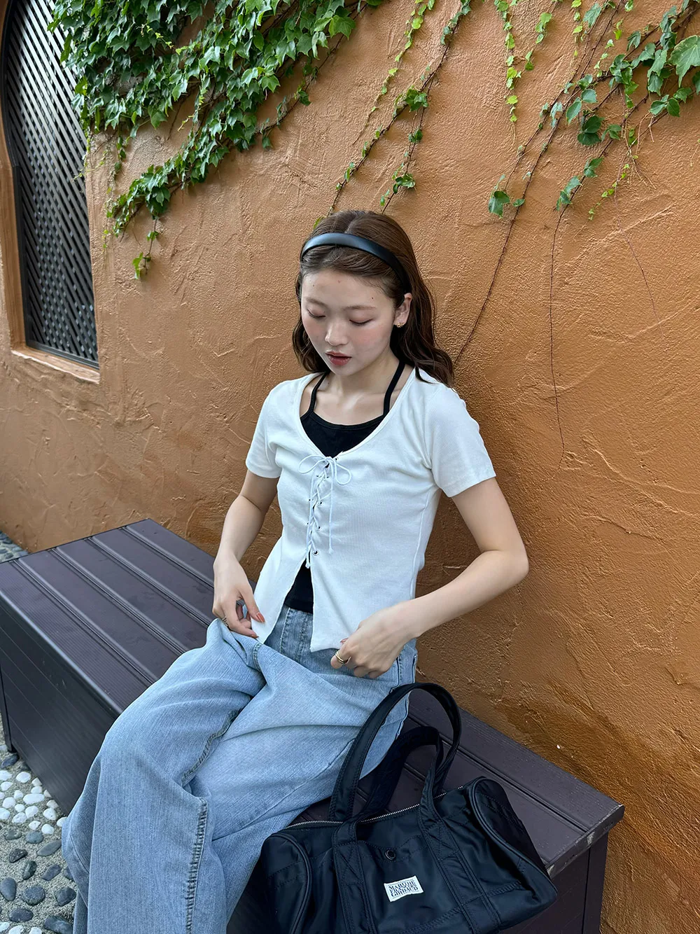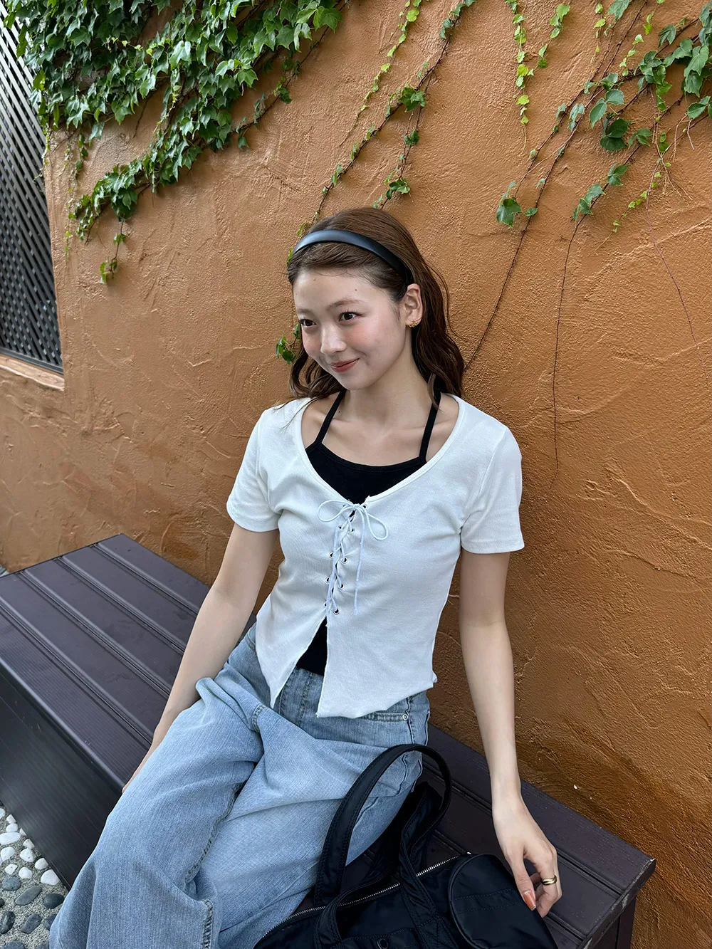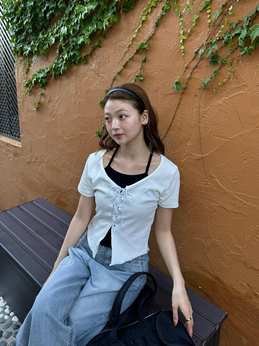 キャミソールとレースアップデザインの